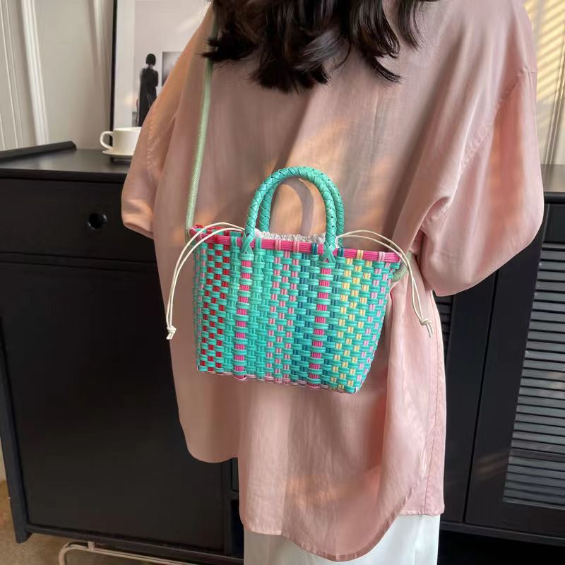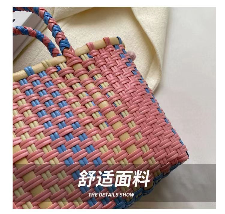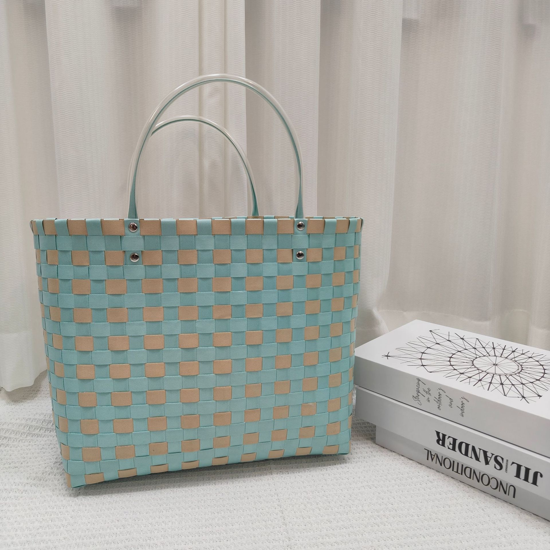 手編みプラスチック製ランチボックスバッグ、大容量野菜バスケット、ママバッグ、トート編みバスケットバッグ、ハンドバッグ、ショルダーバッグ