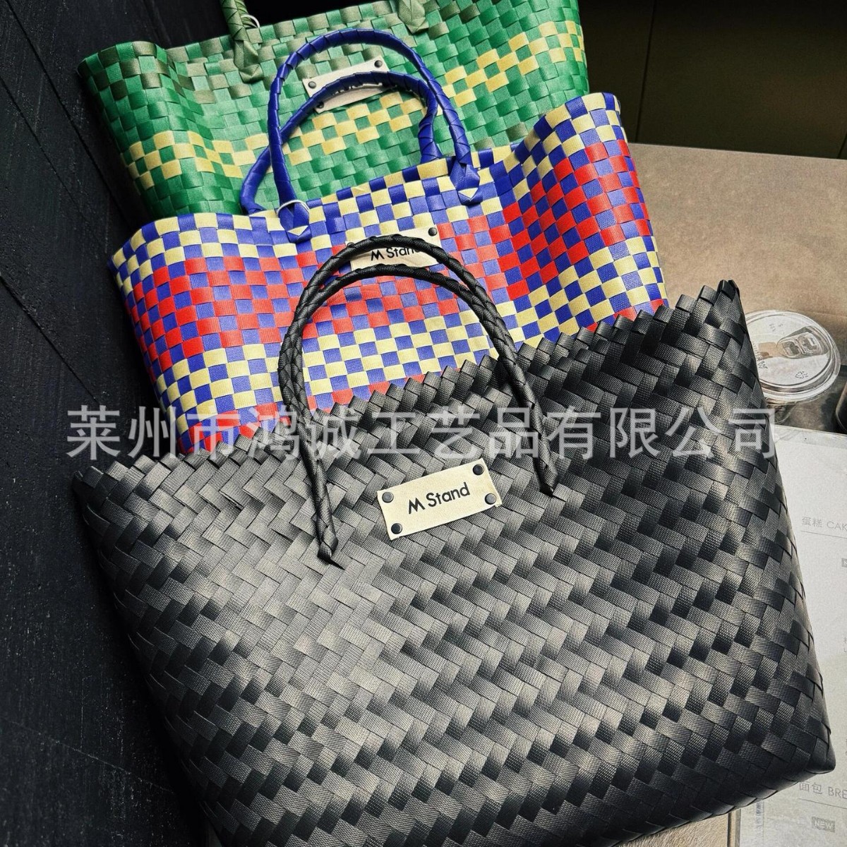 春季新款黑金配色大容量手工编织塑料包菜篮子手提沙滩休闲女士包