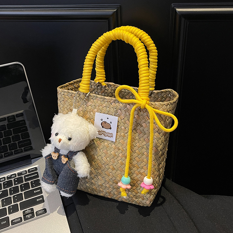 カジュアルな編み込みビーチバッグ、シンプルなリゾート風草編みハンドバッグ、ファッショントレンドの買い物かご、レディースバッグ、カジュアル旅行