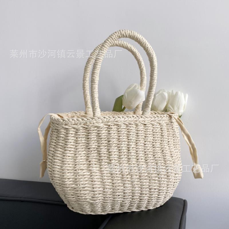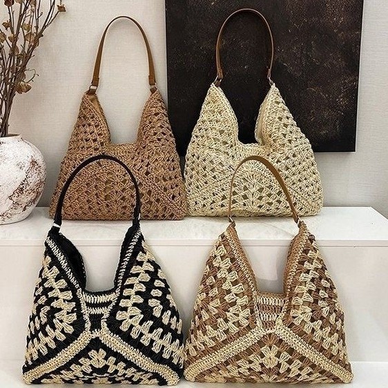 新款时尚手工编织包包百搭纸绳钩针草编包包度假风沙滩包单肩草包