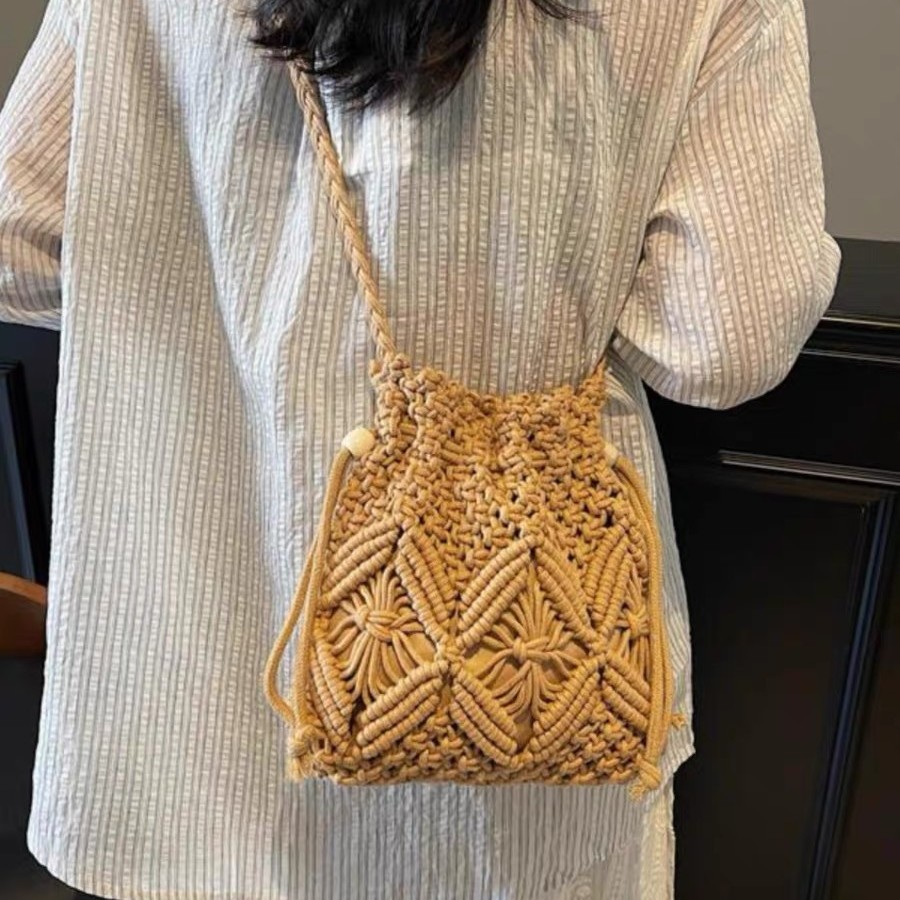 クロスボーダー手編みバッグ レディース 夏新作 透かし編みかぎ針編みバケットバッグ 海辺の休暇 ビーチバッグ ショルダーバッグ