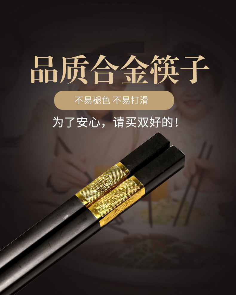 高級合金箸家庭用箸滑り止めカビ防止耐高温変形ホテル食器抗菌消毒可能