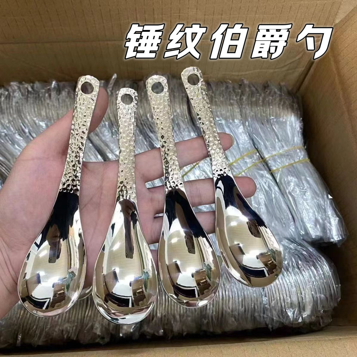 复古式锤点勺子不锈钢锤纹勺家用加厚餐勺学生吃饭勺高颜值甜品勺
