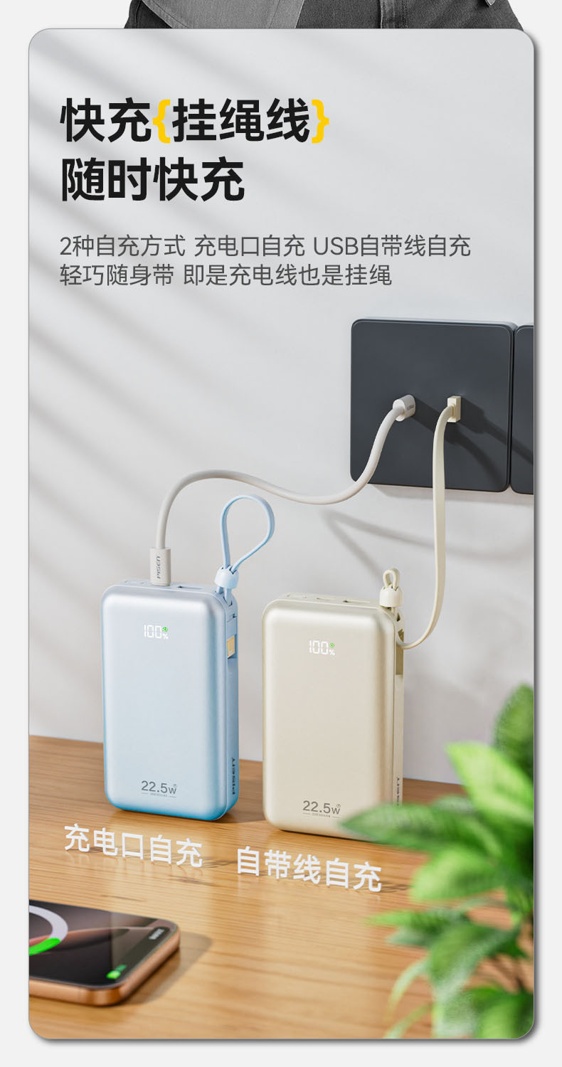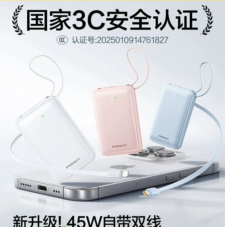 Pinsheng 内蔵ケーブル PD22.5W 急速充電モバイル電源ミニコンパクトポータブル電源ギフトカスタムロゴ