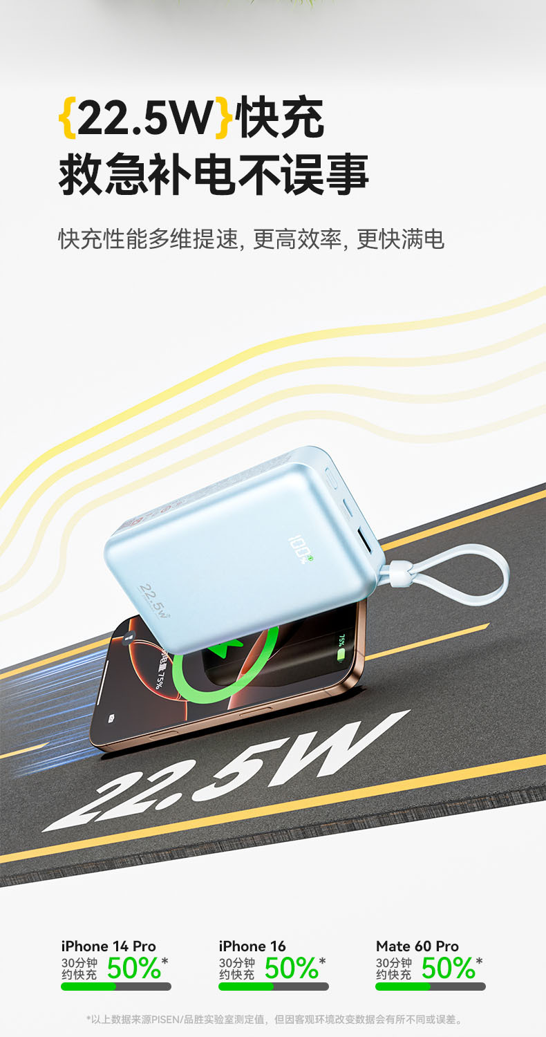 【3C认证可上飞机】品胜磁吸充电宝10000毫安20W快充MagSafe无线