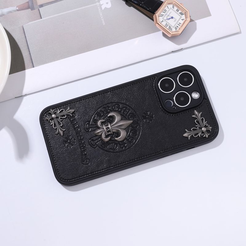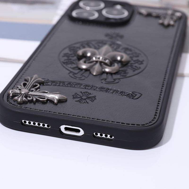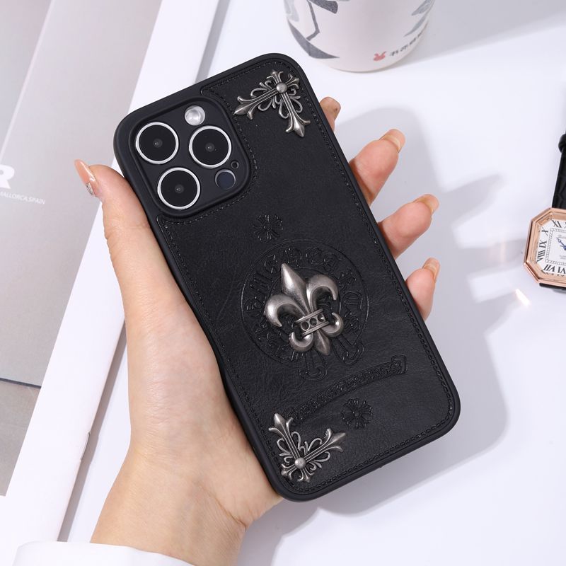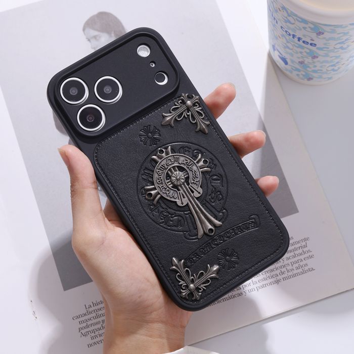 トレンドブランドのレザー製クロウハート風iPhone15/16/17Pro Max対応、Apple全機種対応の耐衝撃カップル向けスマホケース