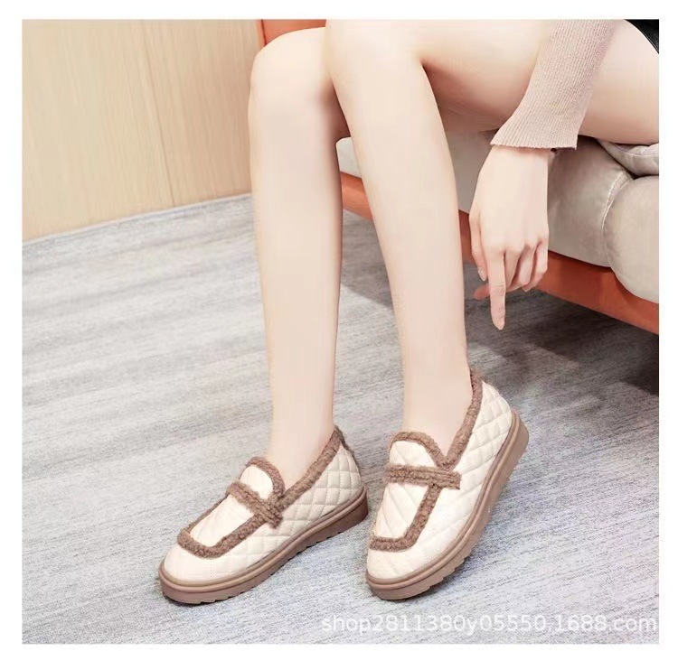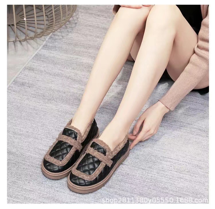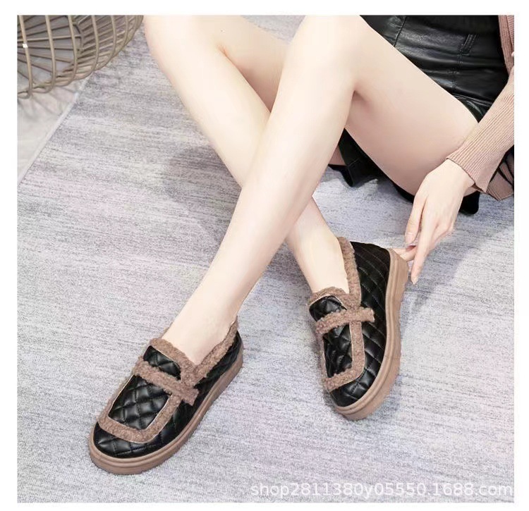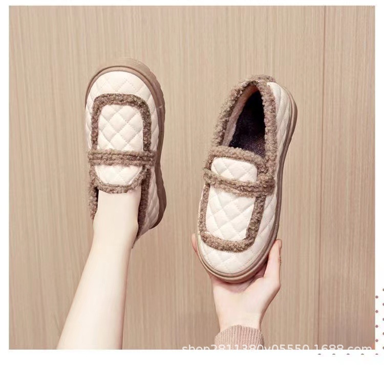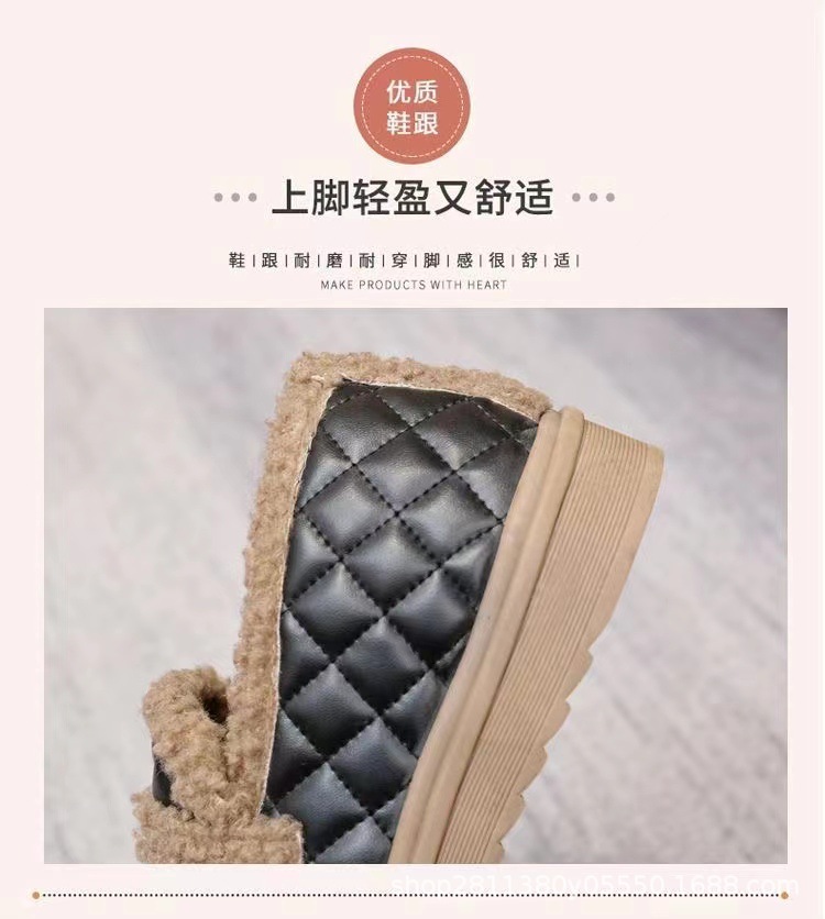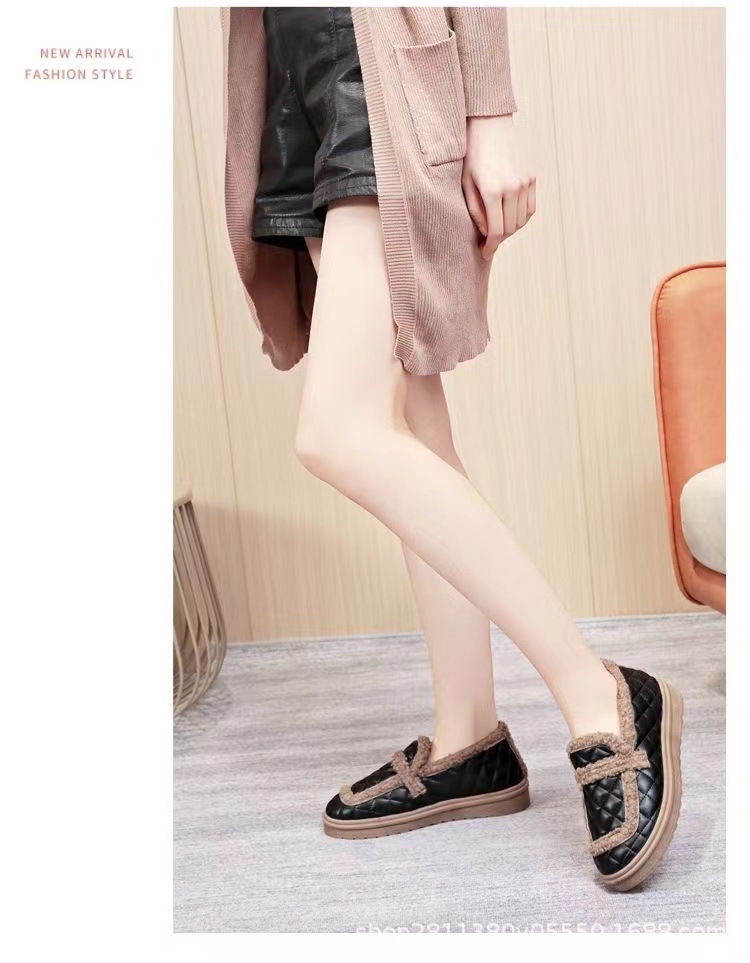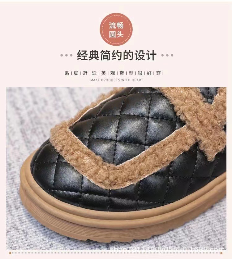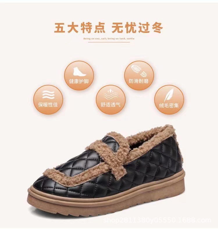 冬季加绒加厚女棉鞋一脚蹬厚底保暖妈妈鞋真皮毛毛鞋防滑乐福鞋