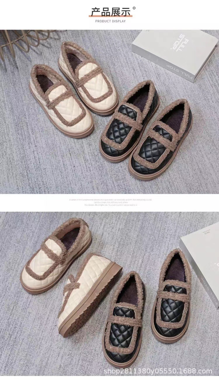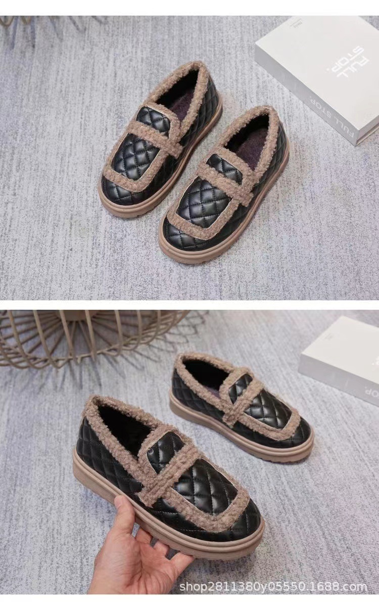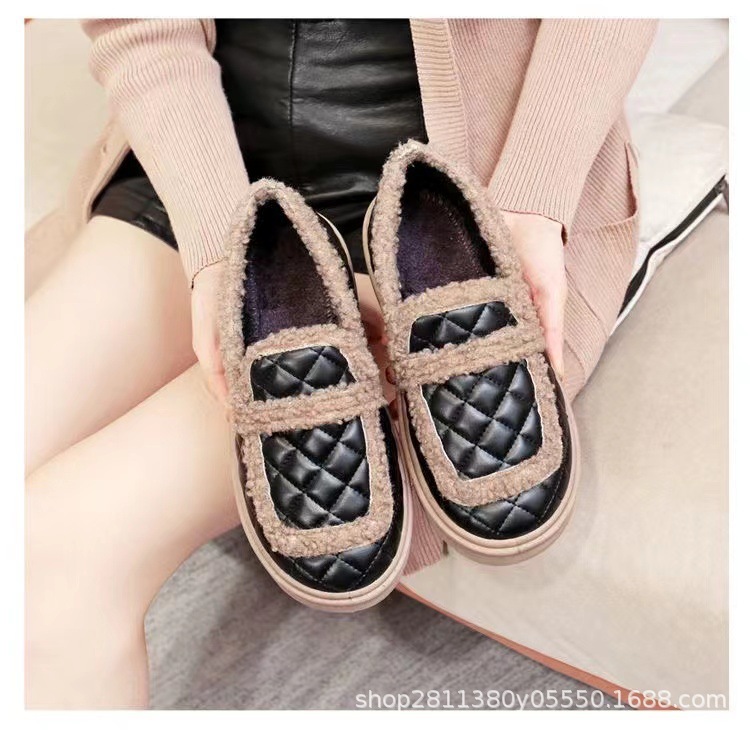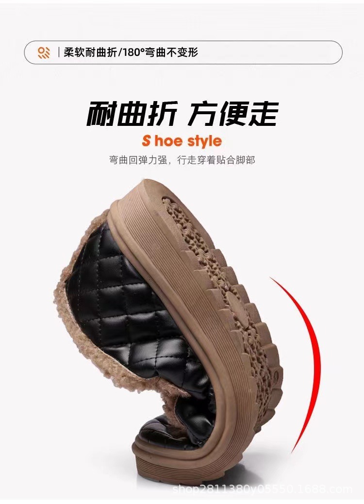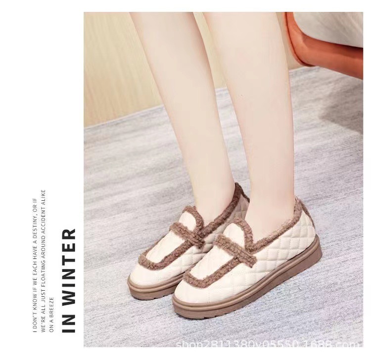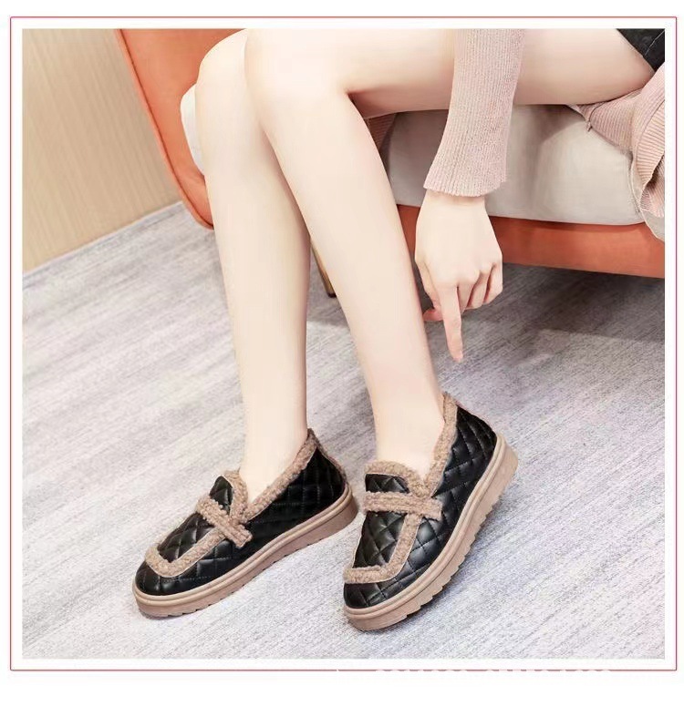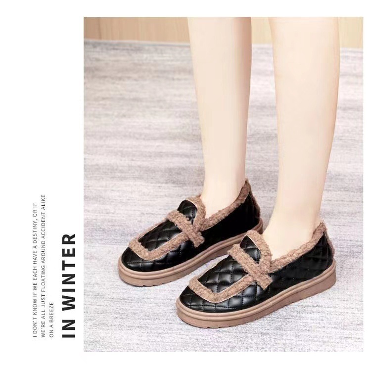 冬季加绒加厚女棉鞋一脚蹬厚底保暖妈妈鞋真皮毛毛鞋防滑乐福鞋