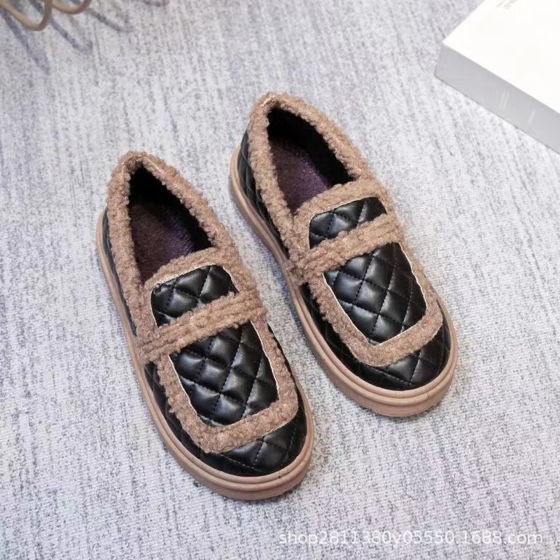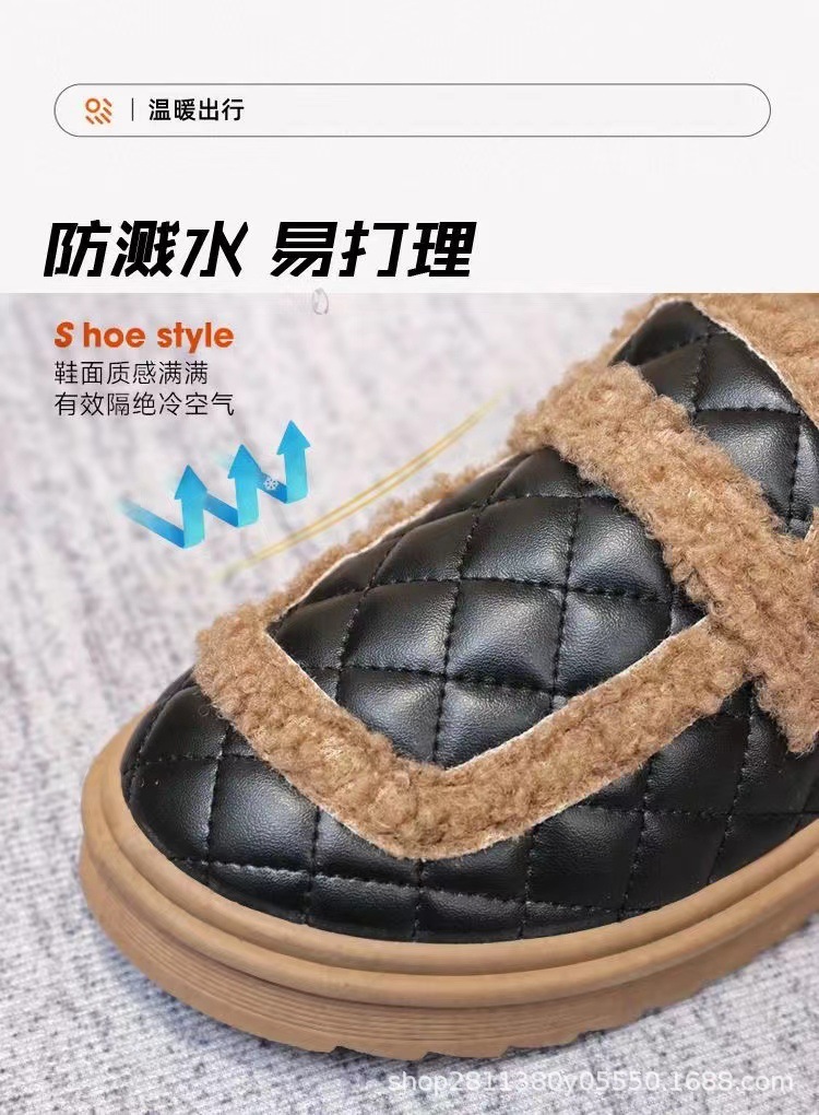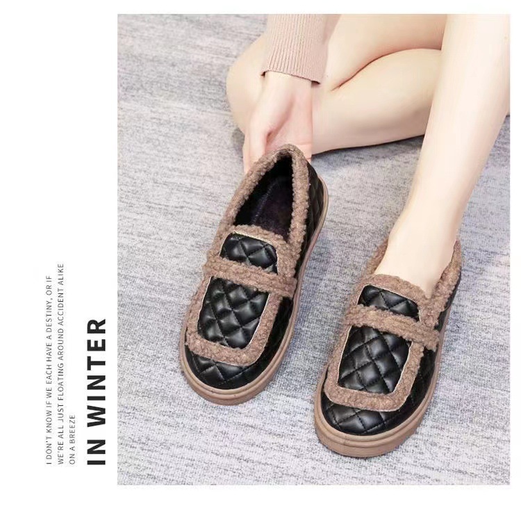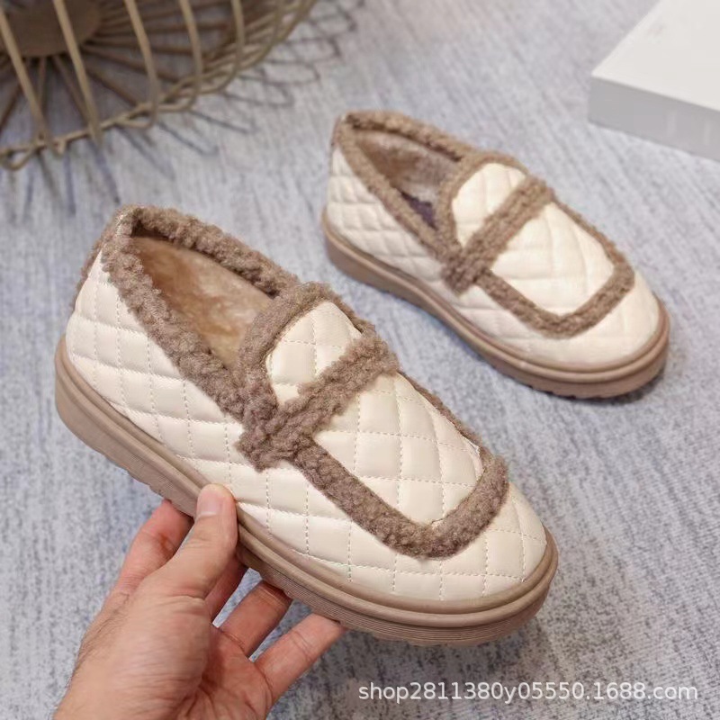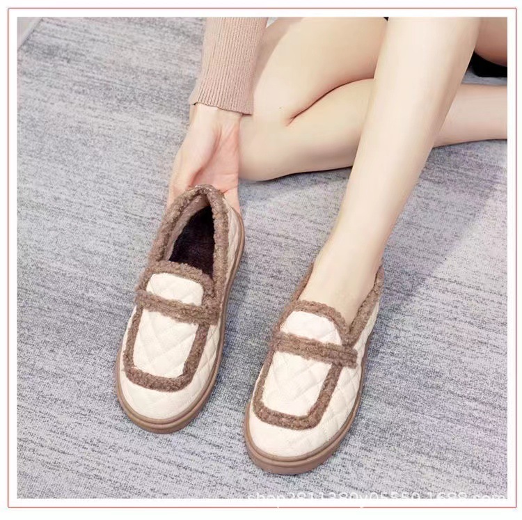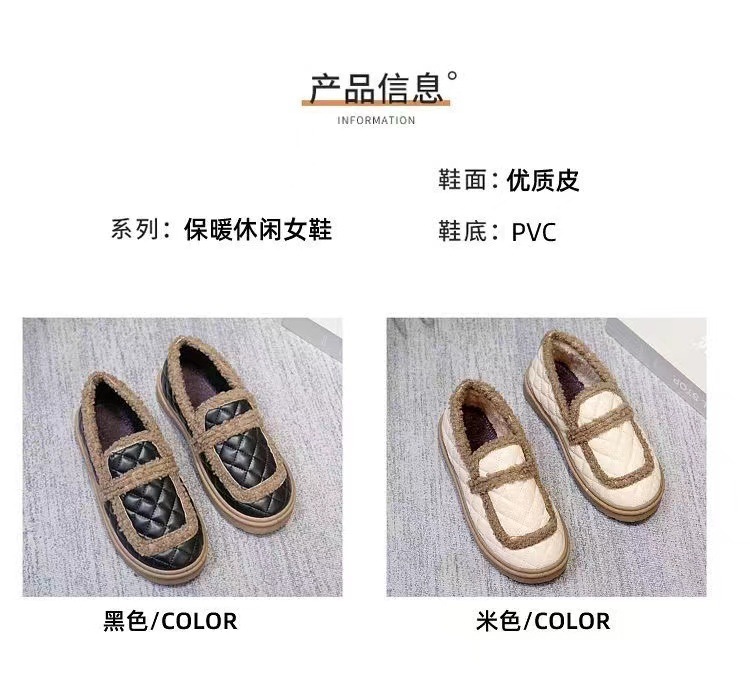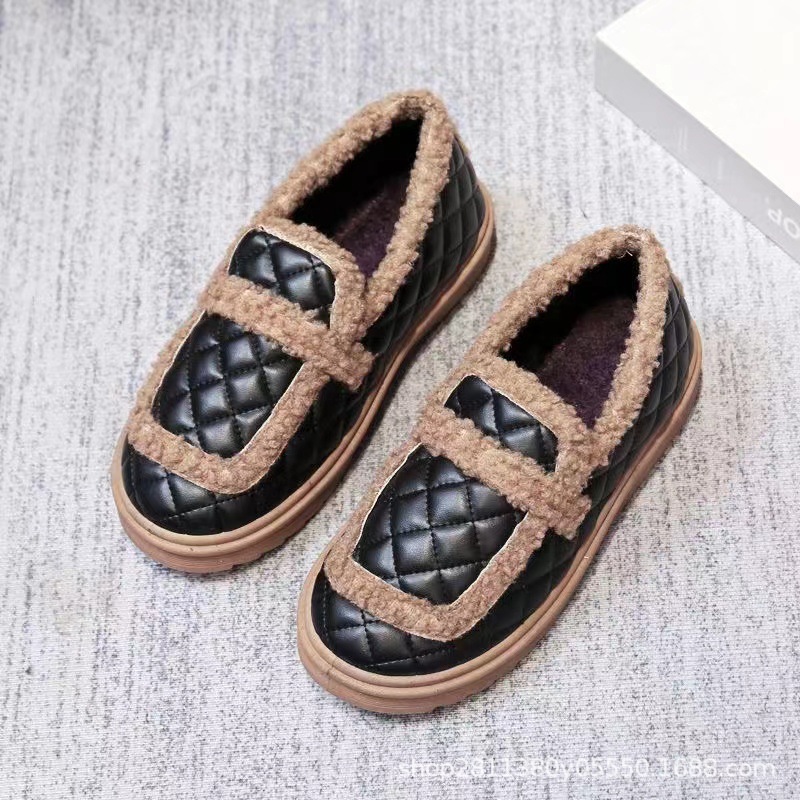 冬季加绒加厚女棉鞋一脚蹬厚底保暖妈妈鞋真皮毛毛鞋防滑乐福鞋
