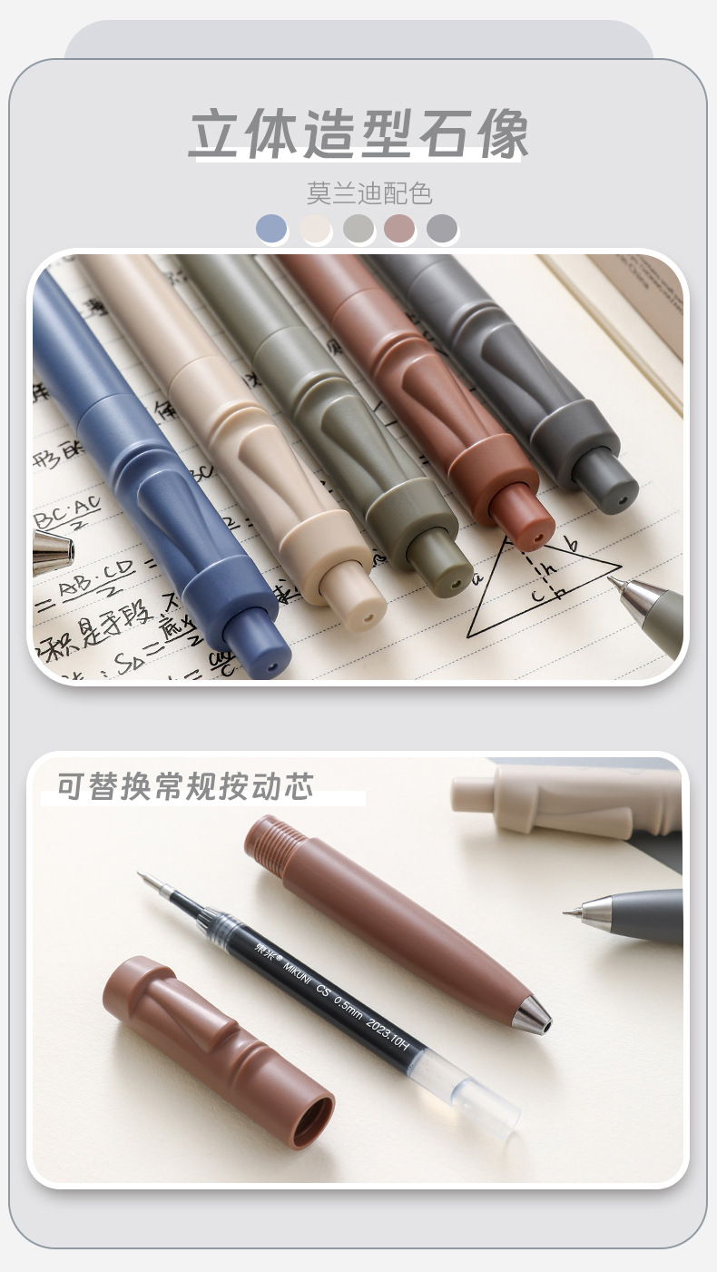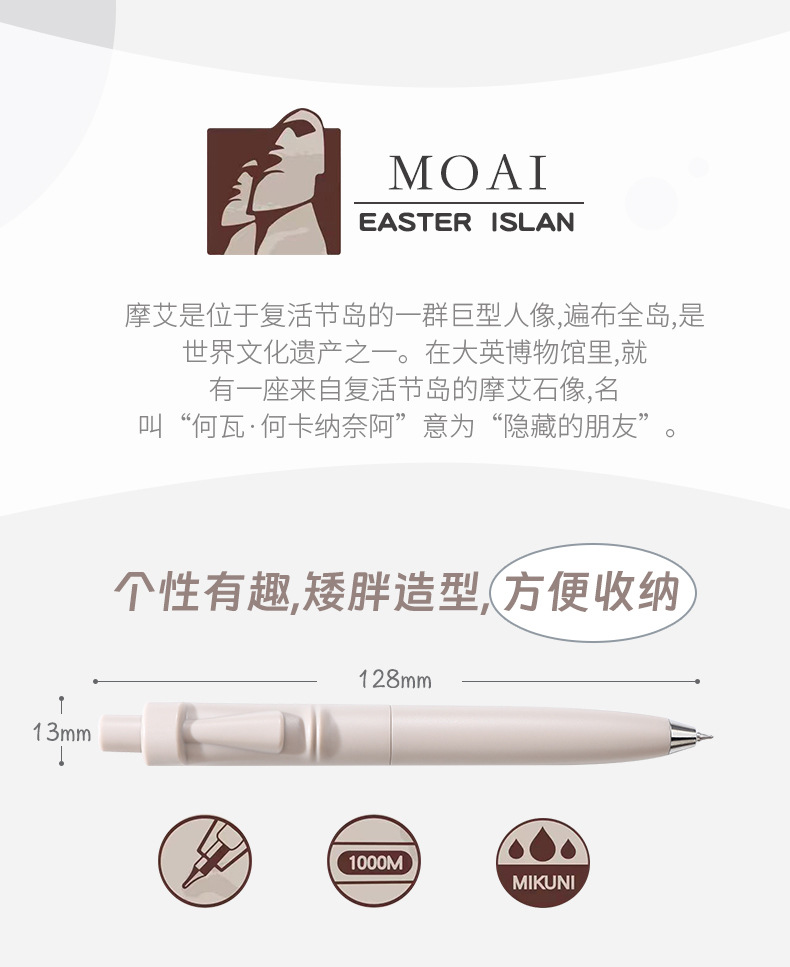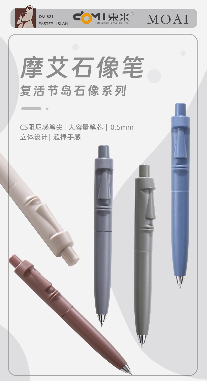 東米821moaiモアイ押し中性ペン低重心イースター石像ペン大容量黒ペン