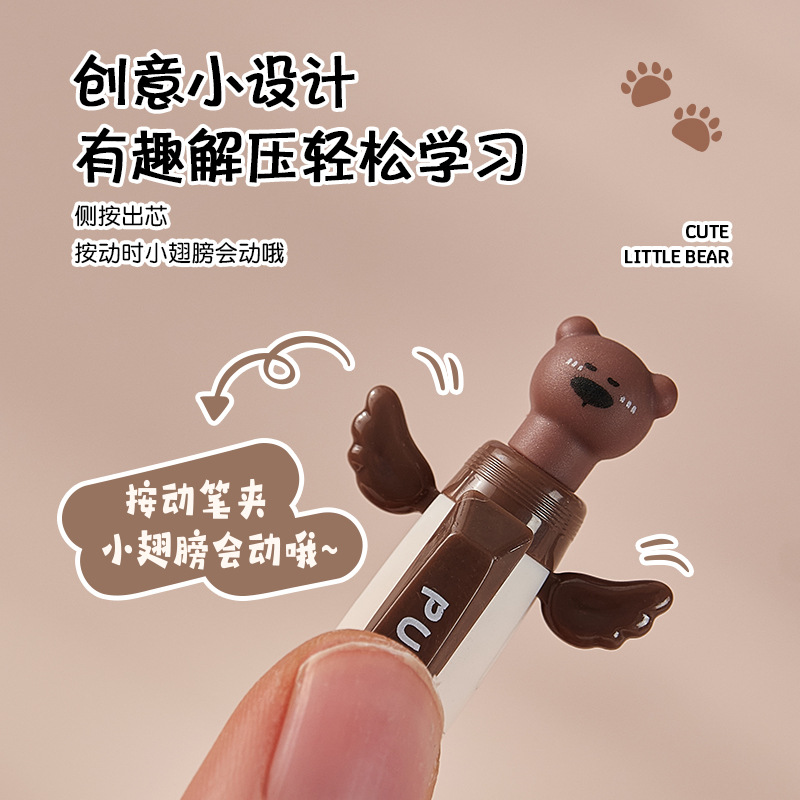 【福利品】凡物象怪ピーチベア 消せるゲルペン クリエイティブな翼付き 楽しいクリック式摩擦ペン