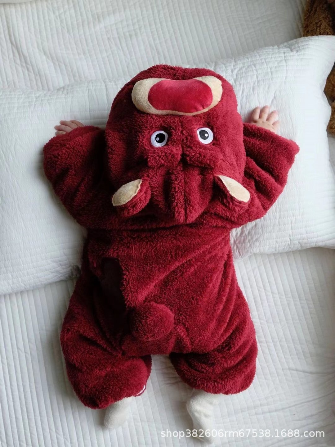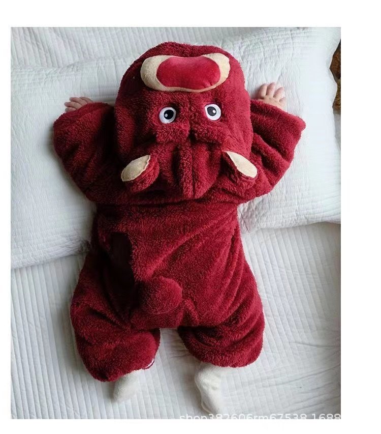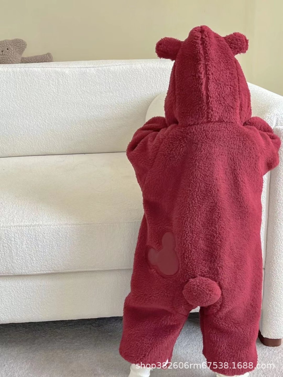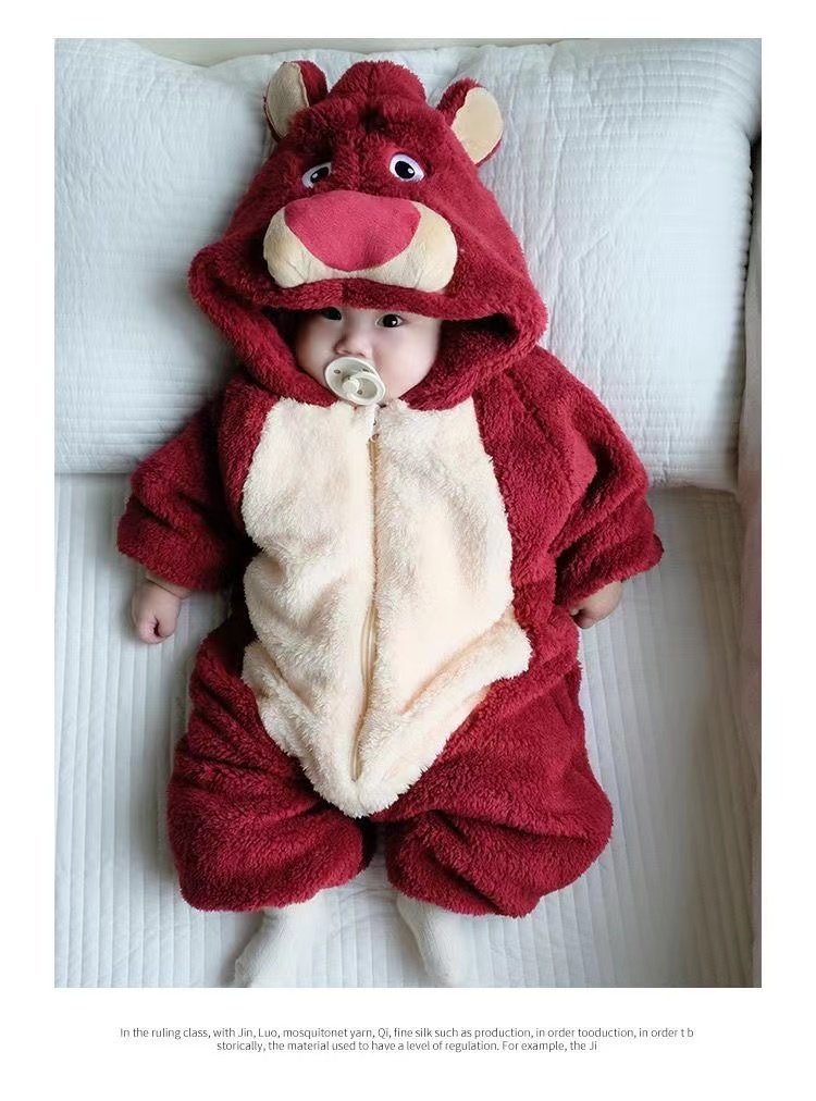 いちご熊服赤ちゃんが登る服秋冬ベルベット保温少女連体服赤ちゃんパジャマ男子家庭服