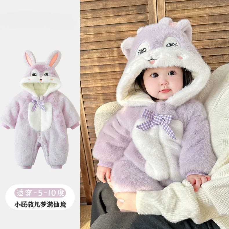 婴儿连体衣冬季加绒棉服女宝宝衣服冬装可爱萌婴幼儿抱衣外出服