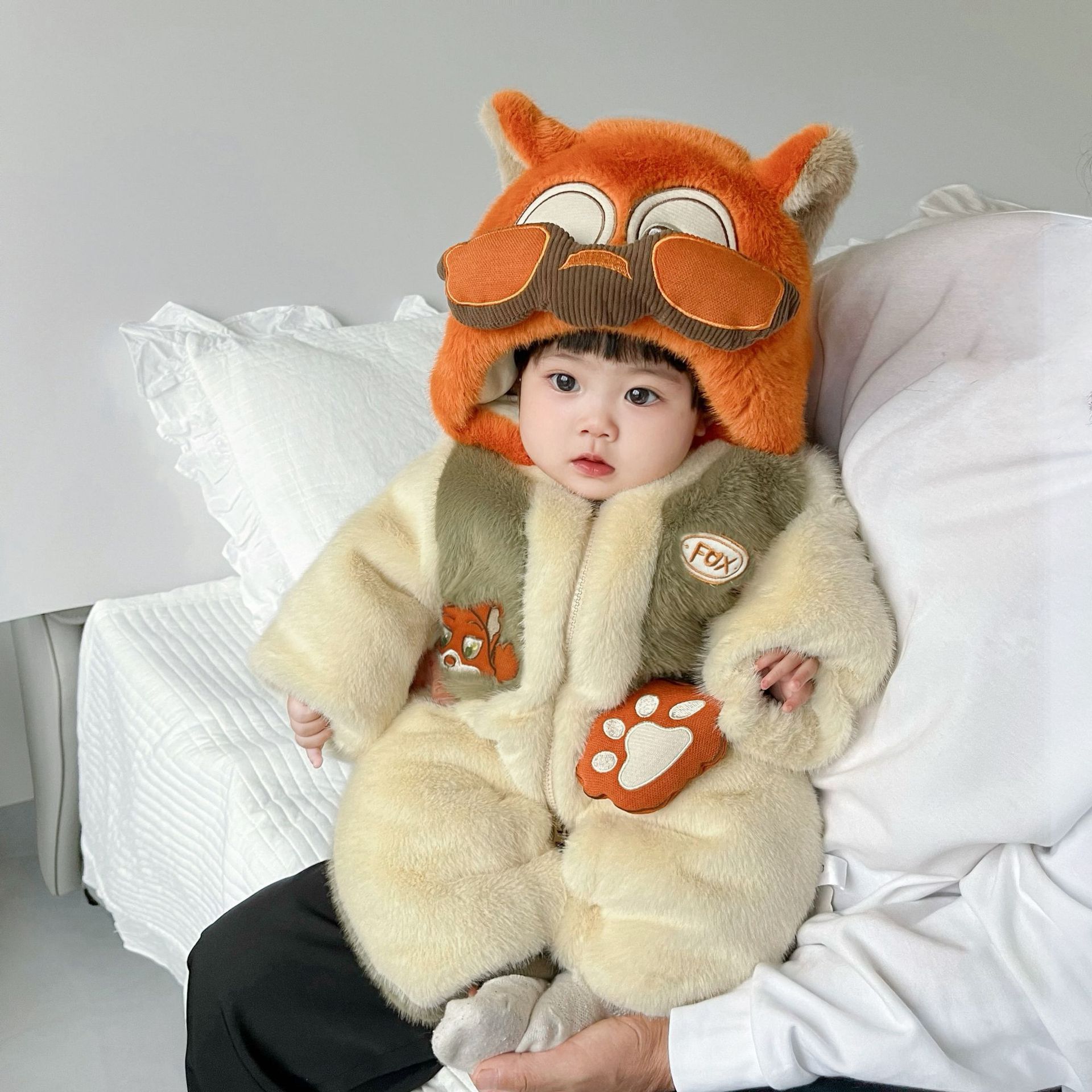 赤ちゃん保温秋冬アニメかわいい厚手のワンピース男女赤ちゃん冬のロンパース新生児外出ロンパース