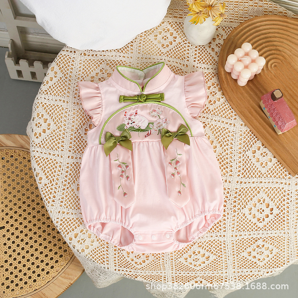 ベビー服、夏用ジャンプスーツ、ロンパース、女の赤ちゃん服、中国風の新しい中国風漢服、夏のお出かけ服