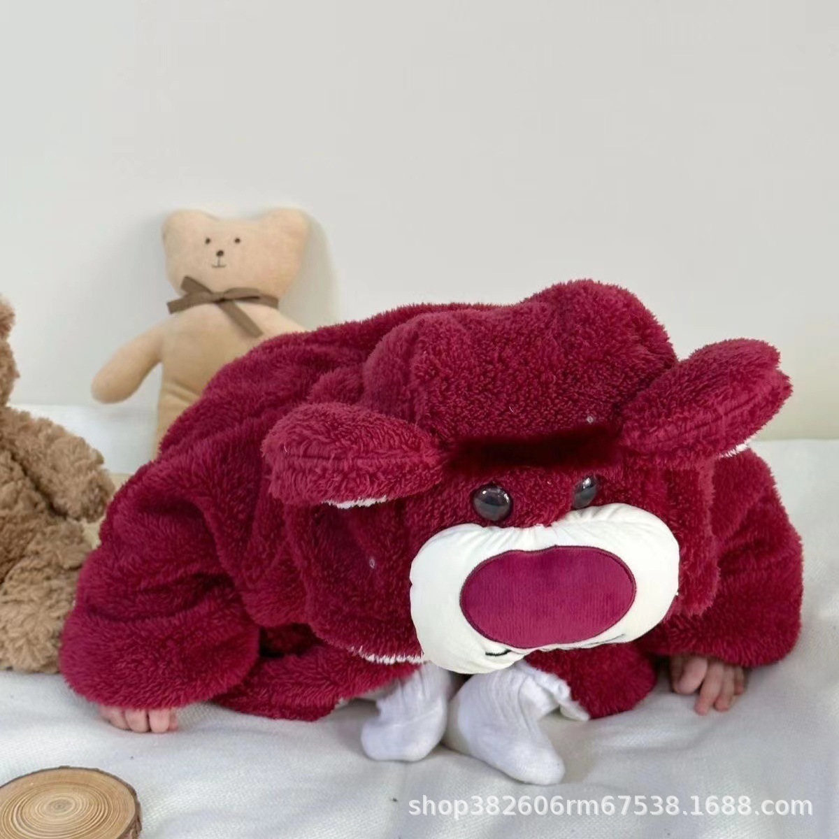 草莓熊衣服婴儿爬爬服秋冬加绒保暖女童连体服宝宝睡衣男童家居服