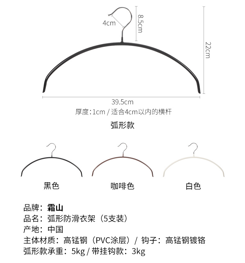 霜山衣架家用无痕晒衣架阳台非植绒浸塑衣架衣柜防滑衣撑挂架