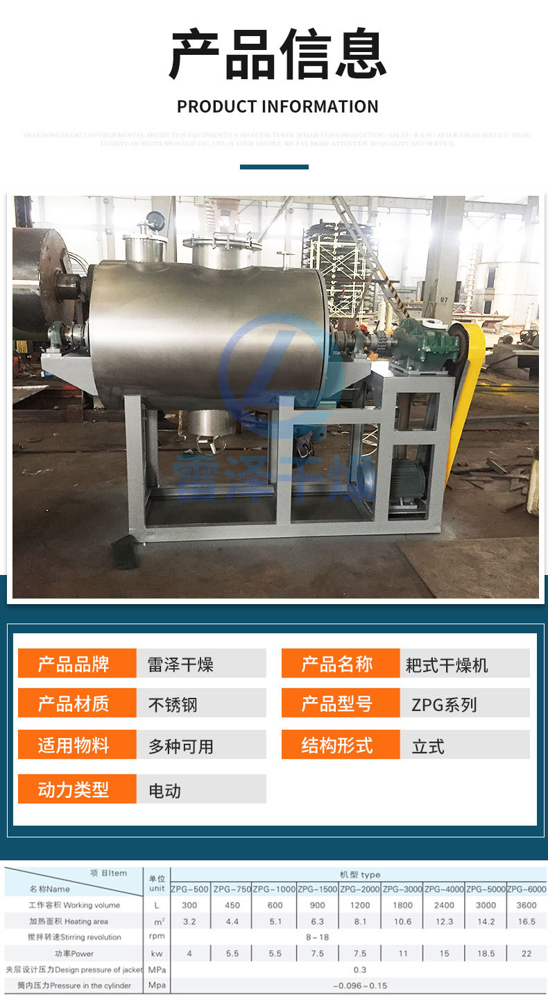 ZPG型真空レーキ乾燥機 横型レーキ乾燥機 中間乾燥機 食品乾燥装置
