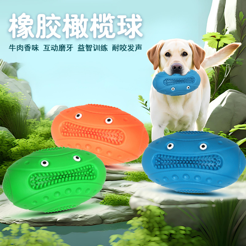国境を越えた人気のゴム製ラグビー、キュート、斬新、噛みつきにくい、歯ぎしり、音を立てて退屈を和らげるアーティファクト、屋外用インタラクティブ犬用おもちゃ