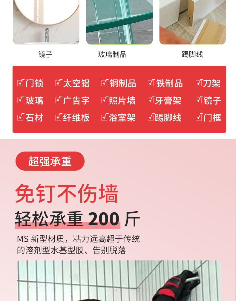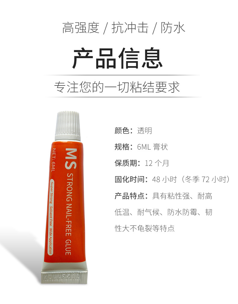 水晶透明釘なし強力構造ゴム液体釘貼りタイル穴なしゴム速乾防水防かびゴム