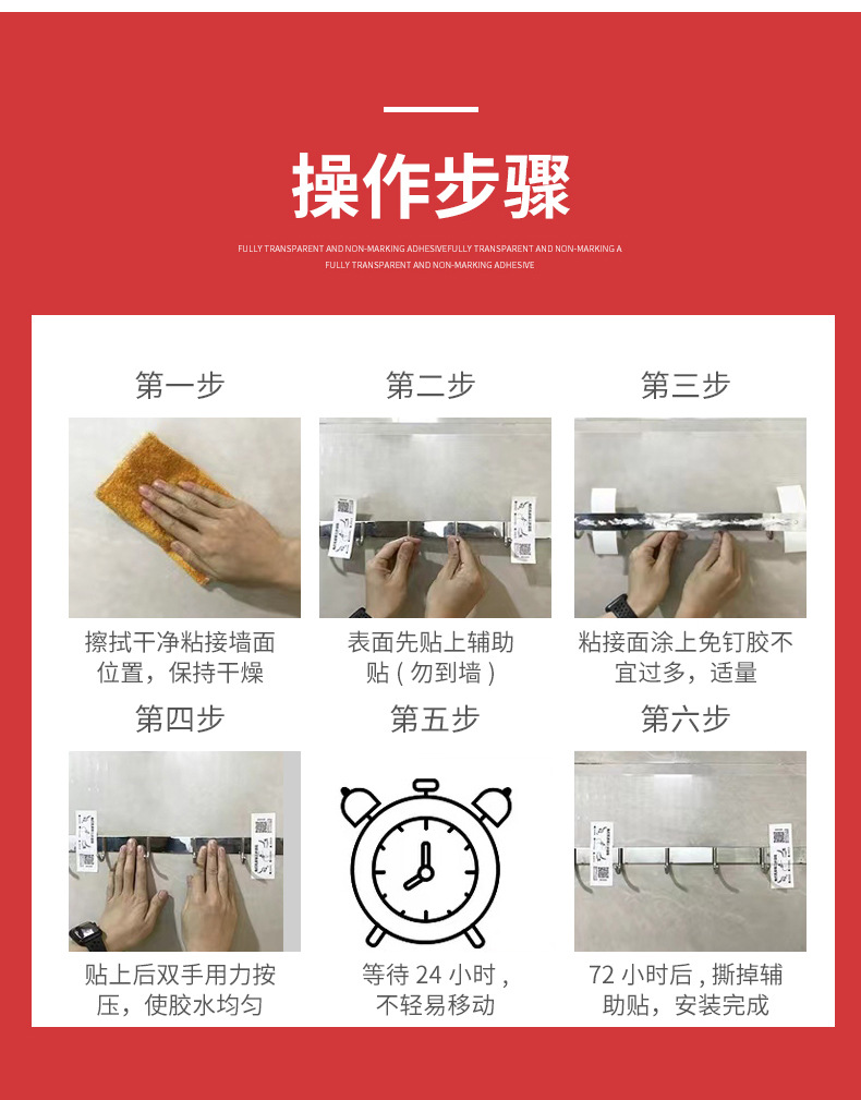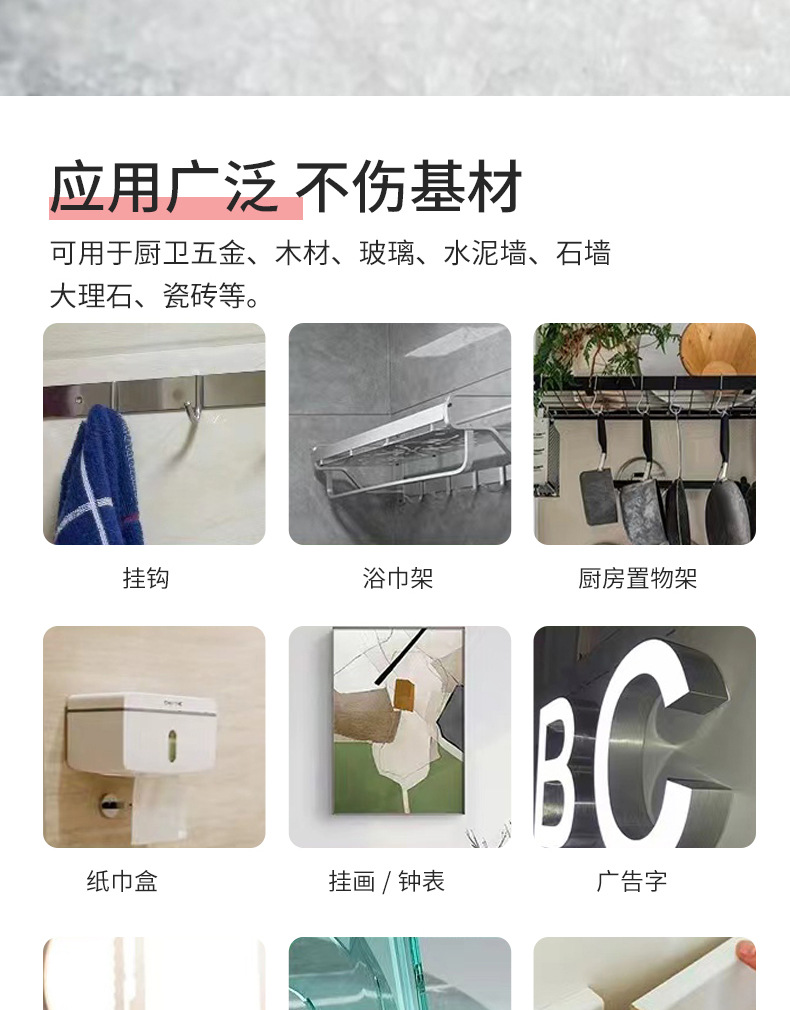 穴あけ不要で数秒で設置できる強力な接着剤、浴室の金物、木材、ステンレス、セラミックに適した補助ステッカー