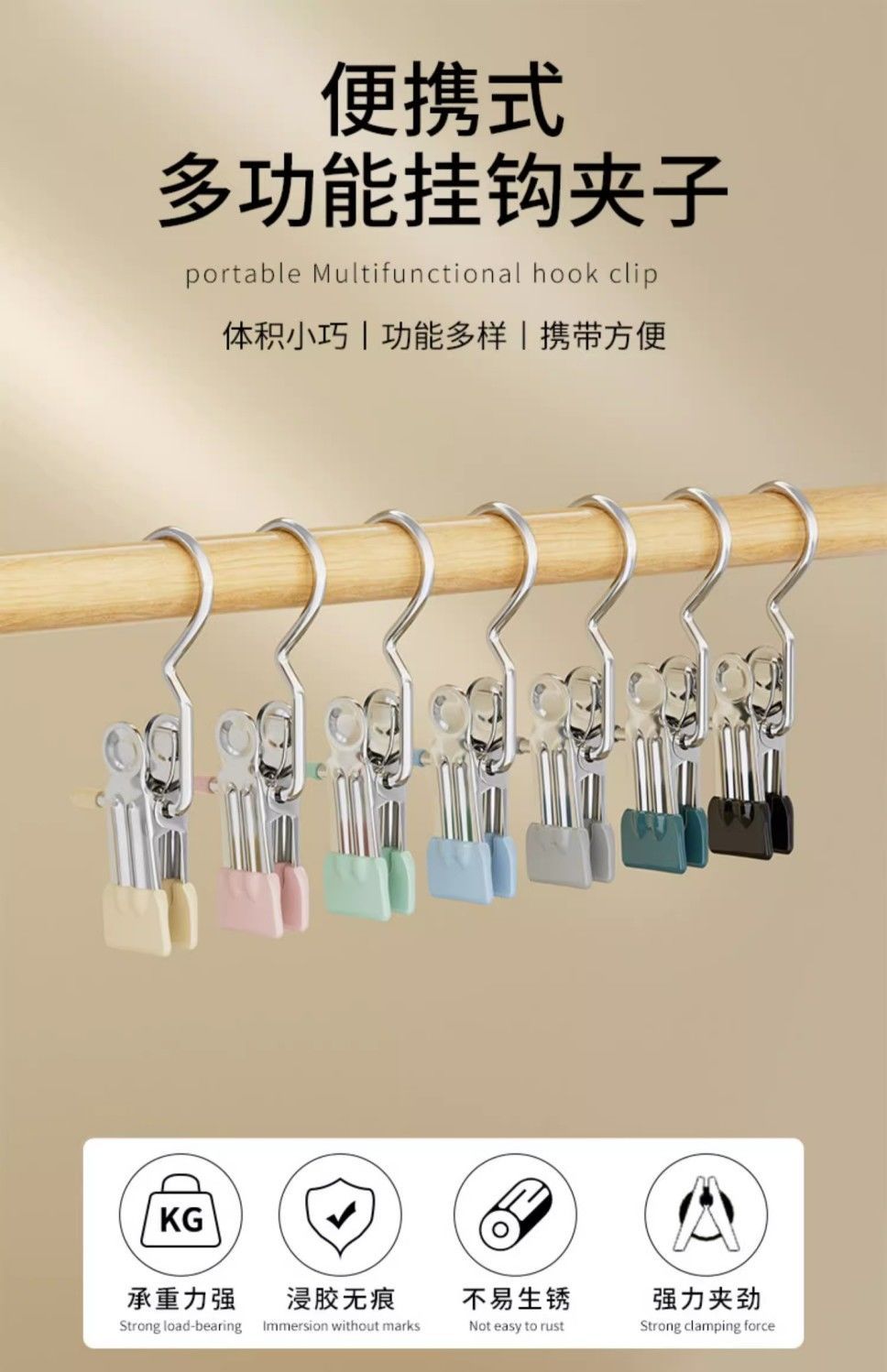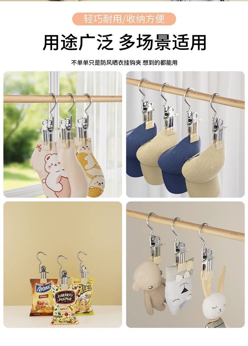フック付きステンレス物干しクリップキズなし帽子収纳ショーツクリップホーム靴下物干しクリップフック3字クリップ