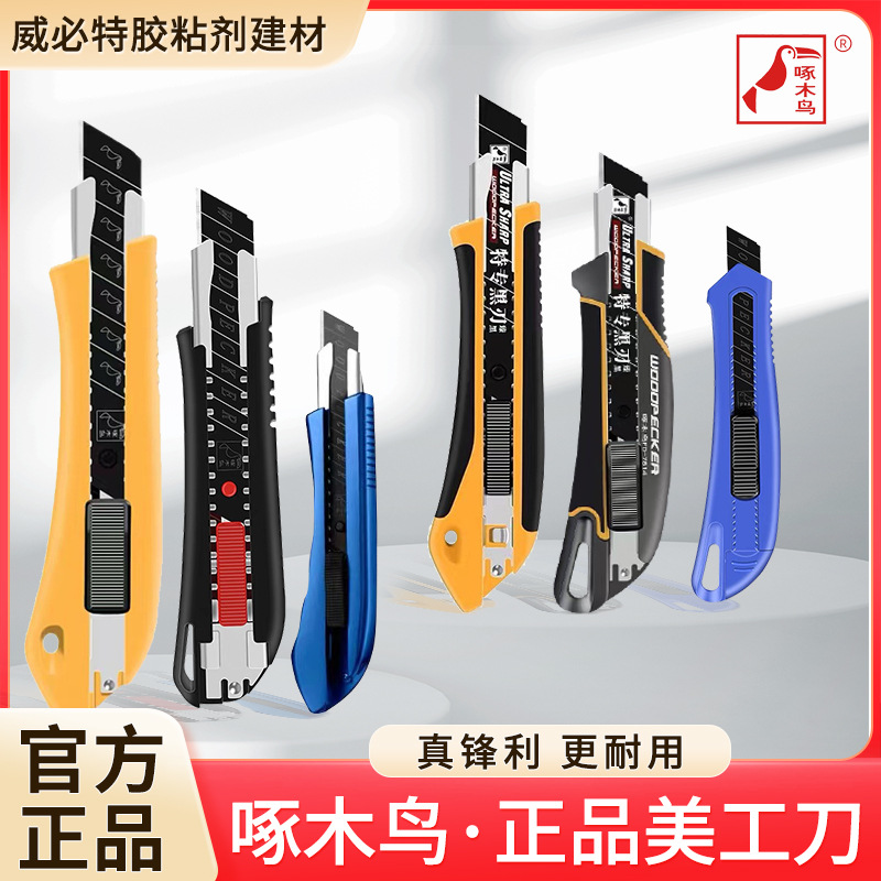 キツツキのFD-786の美工刀の卸売りの美工刀の裁断紙の刀の18mmの大きいサイズの壁紙の刀のセルフロックの切断の刀の台