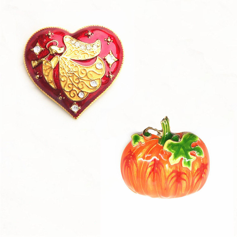ファッションは誇張しています。赤い釉薬カボチャのブローチです。