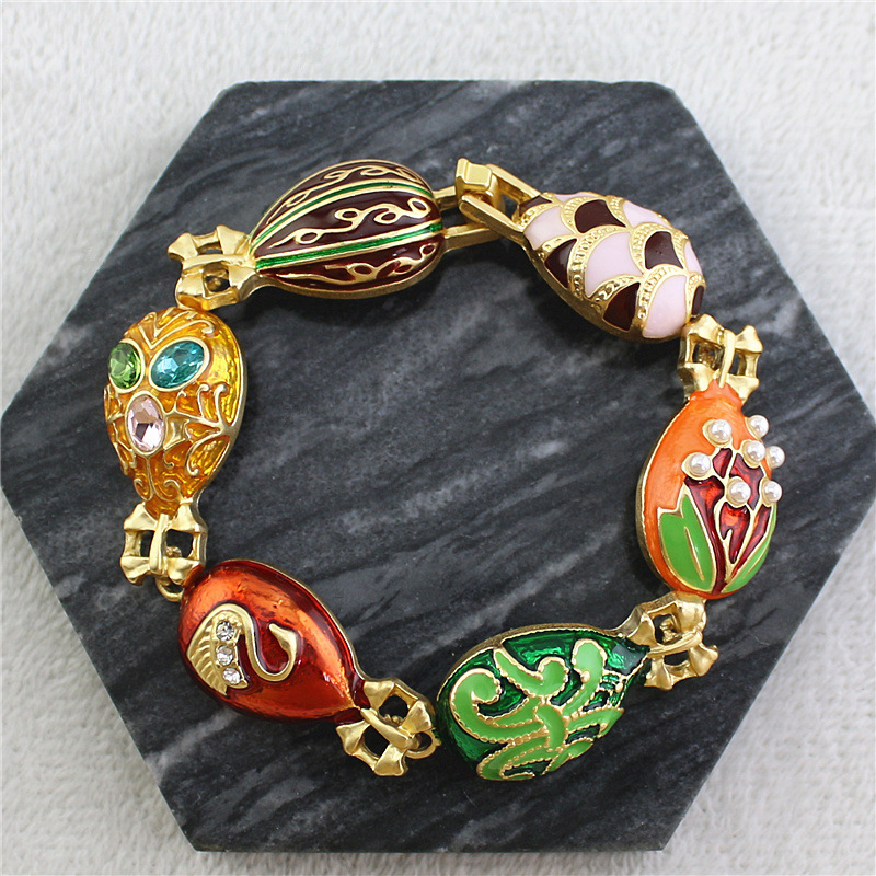 彩卵ブレスレット中古カラーエナメル釉薬メッキメッキ霧真金宝石ドリル白鳥造形ブレスレット包郵便