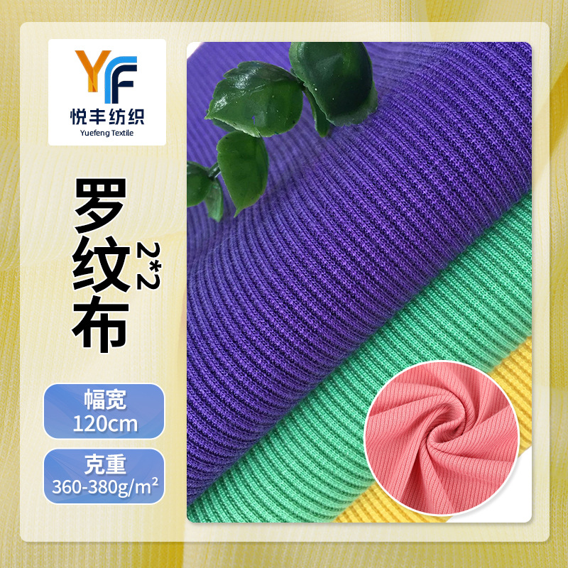 现货21支全涤2*2罗纹布 360克-380g涤氨螺纹布 秋冬袖口下摆罗纹