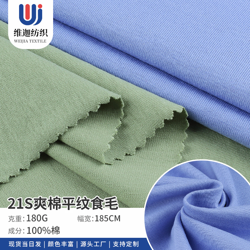 21s爽綿片面平織り食毛綿綿汗布180g春夏精櫛tシャツ家庭服純綿汗布生地