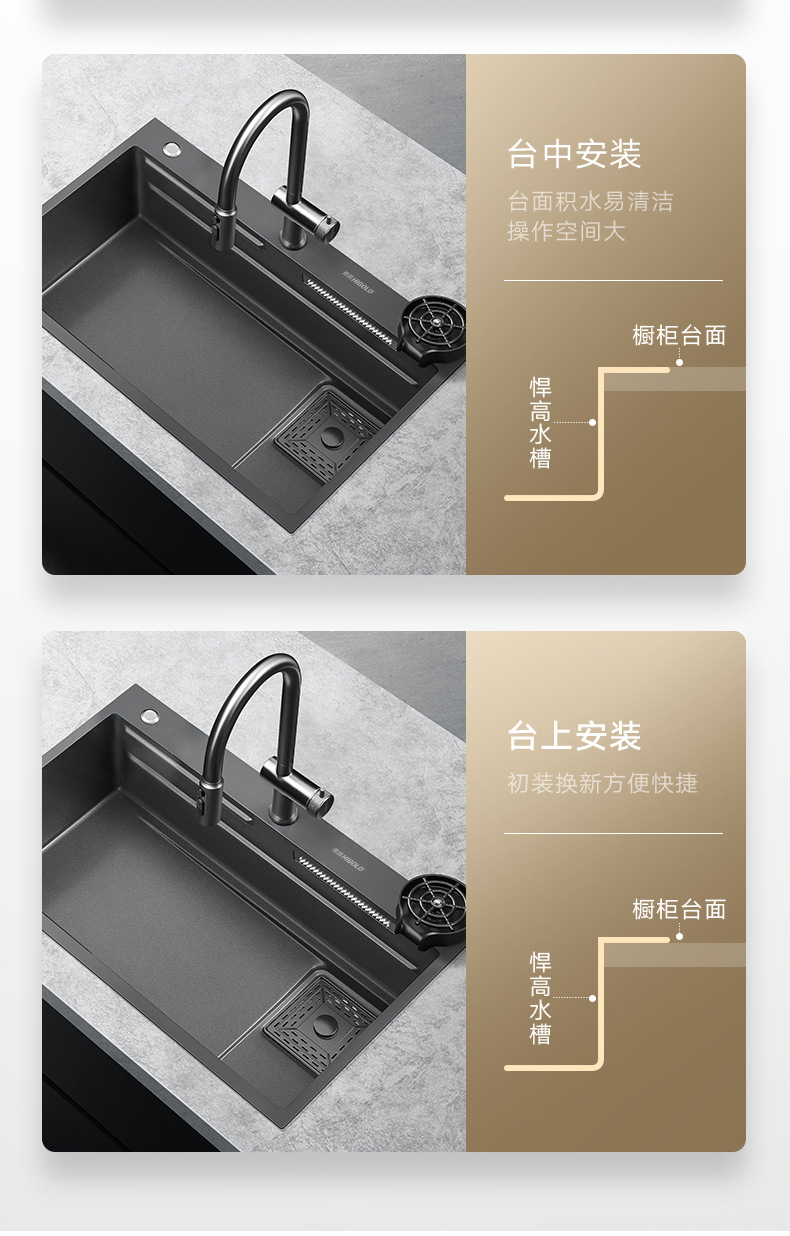 カラー カラー,750*480mm丨ウォーターフォールシンクセット,カラー