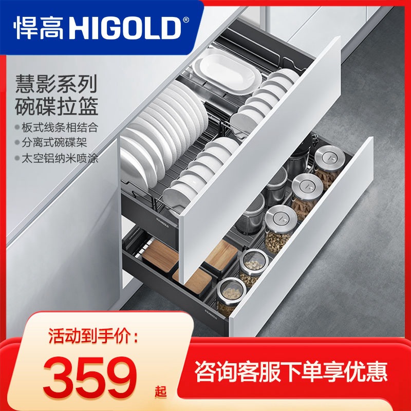 Higold/ハマー高引きかご二重304ステンレスキッチン食器棚調味料引き出し食器棚ダンピング