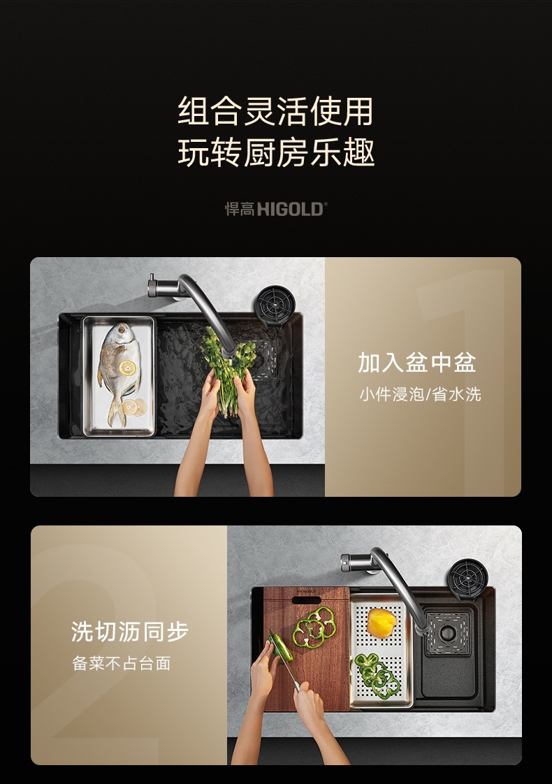 Higold/ハマー高キッチンストレッチ水槽階段式304ステンレス単槽皿洗い池日本式洗面器