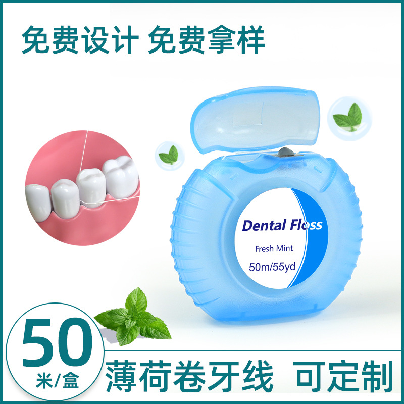 メーカー直販巻歯線50m英語丸箱超細い滑り歯線ミント味携帯現物卸売り