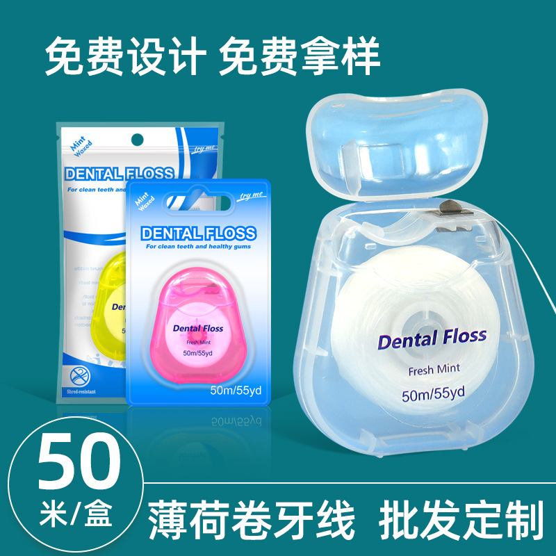 国境を越えた卸売りのフロス巻き50メートルミント味floss矯正巻のフロス口腔クリーナースポット卸売り