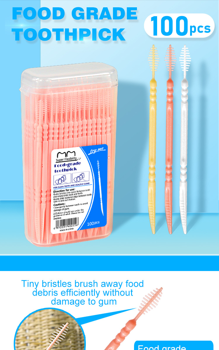 メーカー卸売り爪楊枝ブラシ200本箱入りプラスチック爪楊枝使い捨て家庭用バラ歯茎ブラシ歯茎線