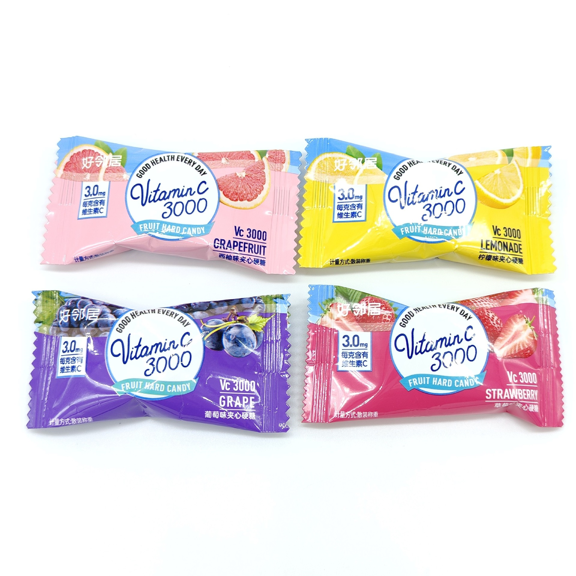 好邻居vc3000葡萄西柚柠檬草莓味夹心硬糖水果糖散装零食结婚喜糖