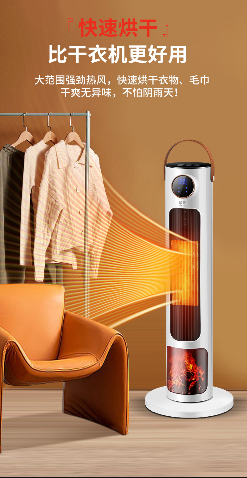 金正暖風機家庭用縦型電気暖房小太陽速熱冷暖縦型ヒーター炎電熱風機