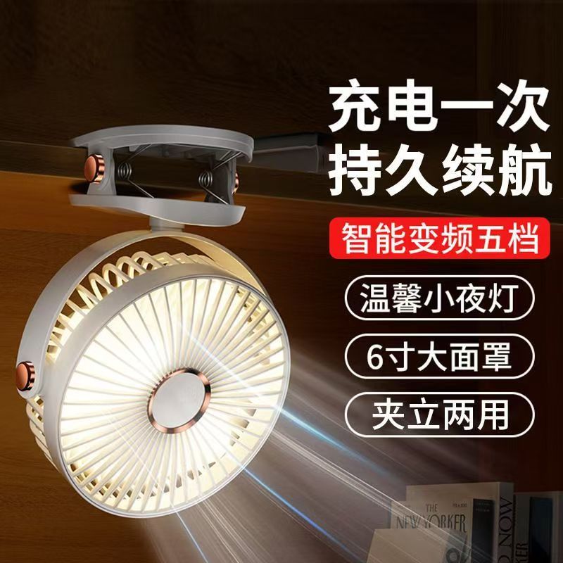 2025新型ライト付きUSB充電6インチクリップファン大風力携帯デスクトップ学生静音小ファン