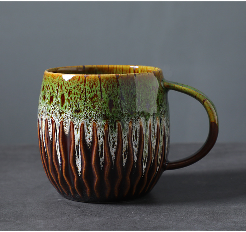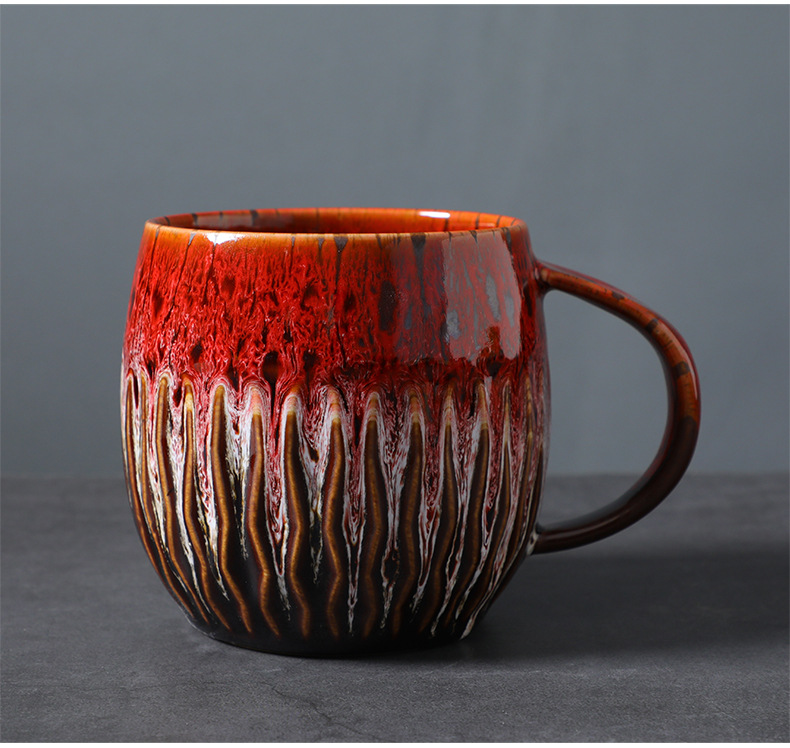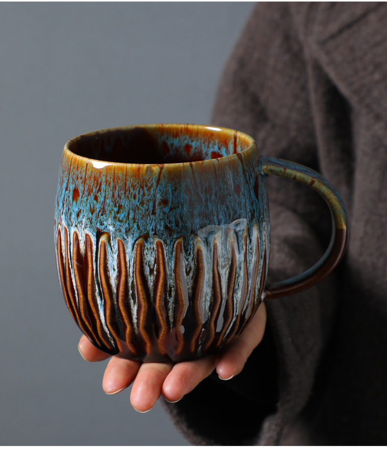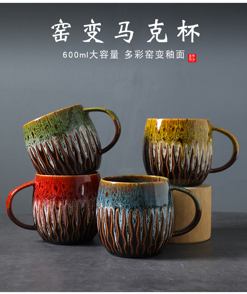 国境を越えてFCM資質600ml大容量窯変コーヒーカップ創造性復古高颜値セラミックマグカップを提供する