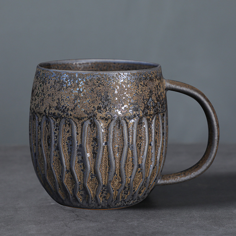 越境創意コーヒーカップ陶磁器中古カップ小衆日本式レトロ粗陶ラテプルカップ午後カップ