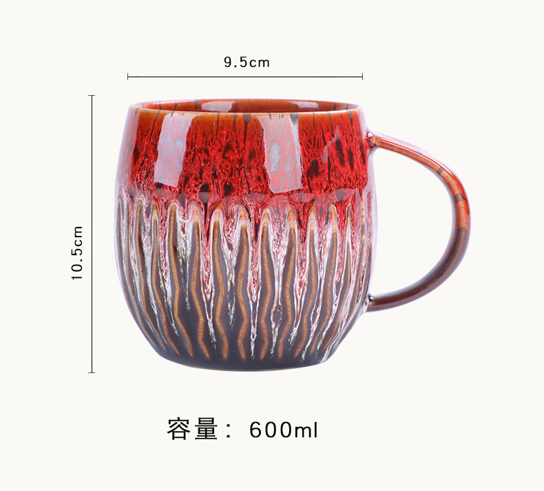 クロスボーダー窯変流釉薬マグカップ600ml大容量陶磁器飲水カップ高颜値朝食カップコーヒーカップ