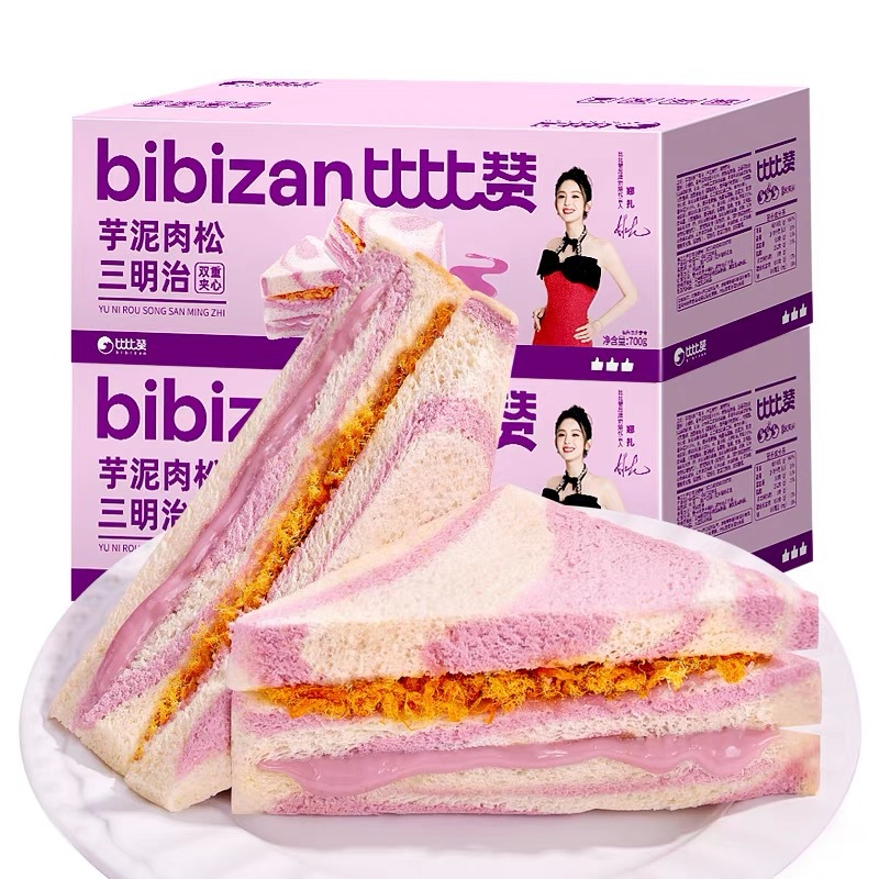 比賛虹芋泥肉松サンドイッチパン箱箱朝食無辺トースト間食レジャー食品軽食