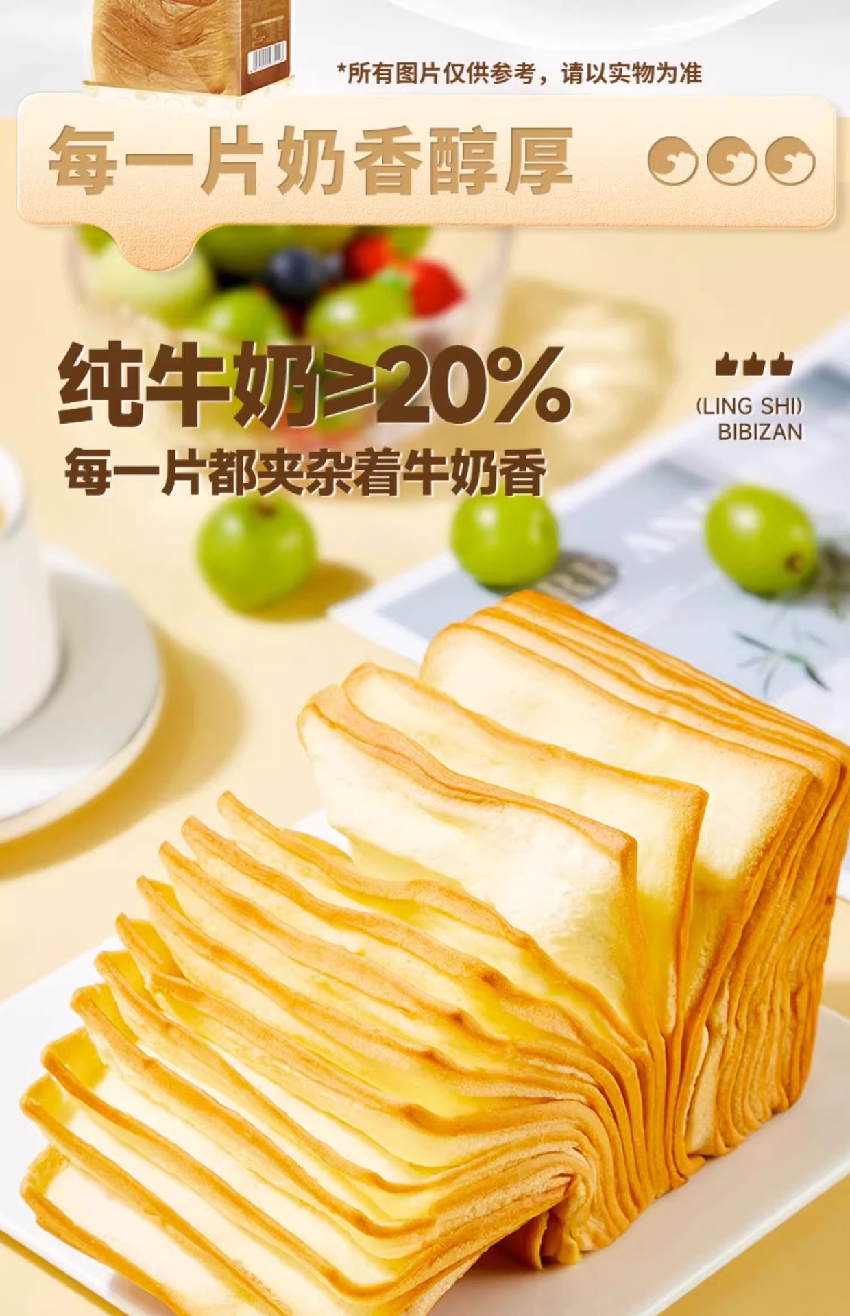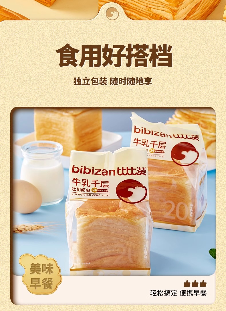 ビザン牛乳千層トースト80g栄養パン朝食ケーキお菓子レジャースナック代発