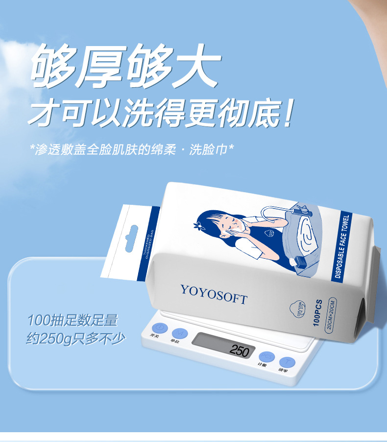 使い捨ての洗顔タオルを厚くして、式の洗顔タオルを取り出します。
