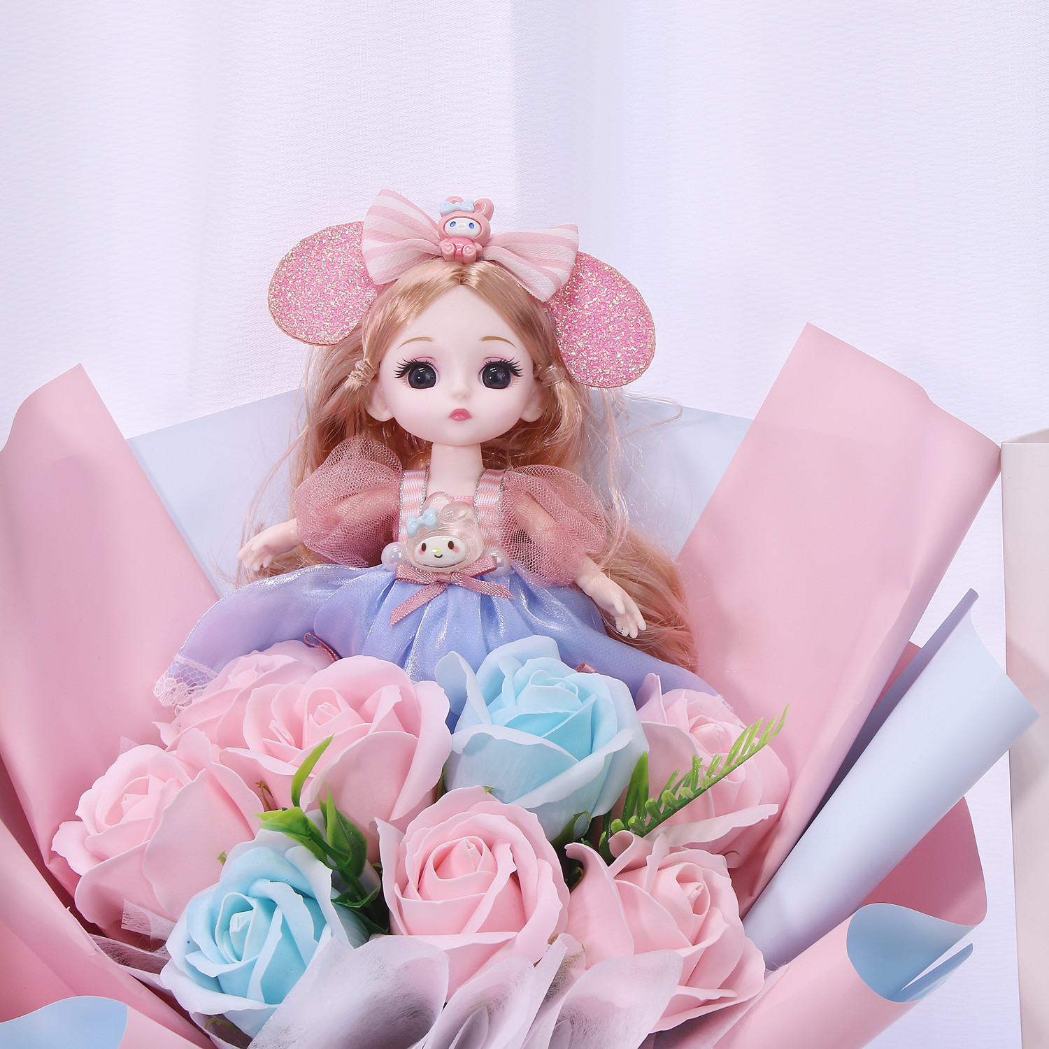 バレンタインデーの王女の花束の女子学生は親友の彼女の高級感の人形の永遠の命の石鹸の花の女子学生の誕生日のプレゼントを送ります。