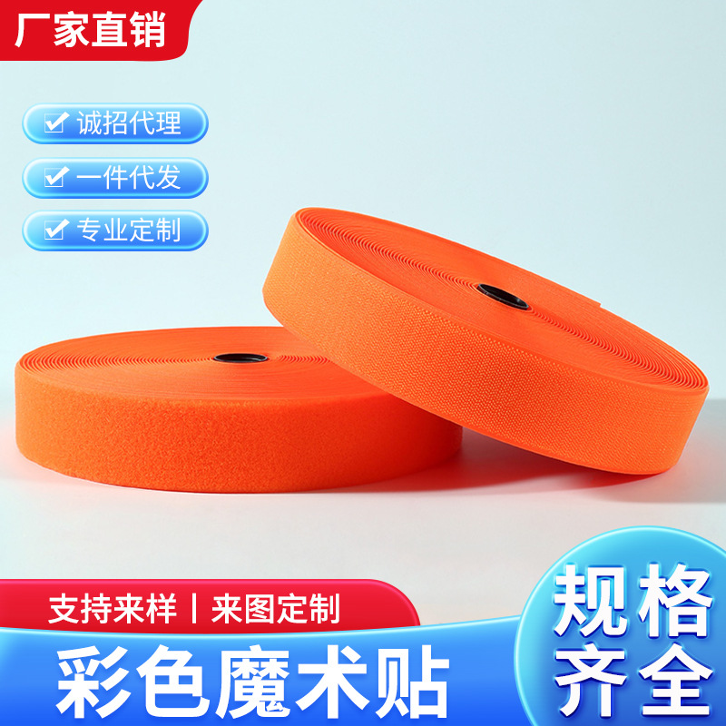 メーカー直販カラーマジックテープ粘着テープ服装補助材料子母雌雄ボタンオレンジ蛍光黄卸売り