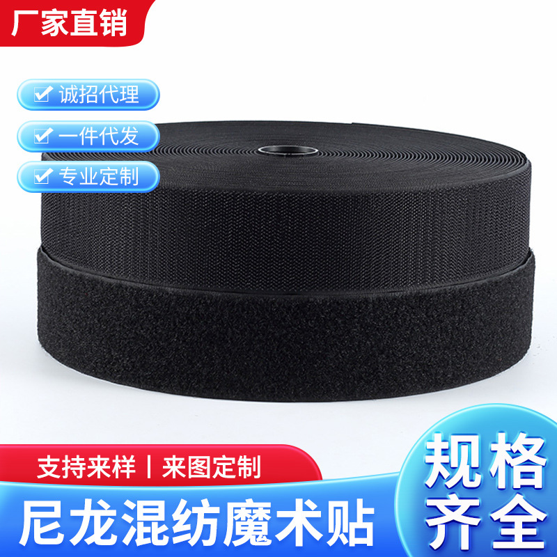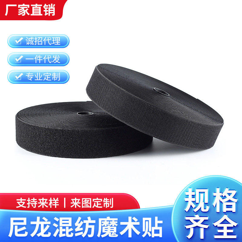 メーカー卸売りナイロン白黒バッグ結束バンド粘着カラー補助材料付き服装ポリエステル結束バンド網戸マジックテープ