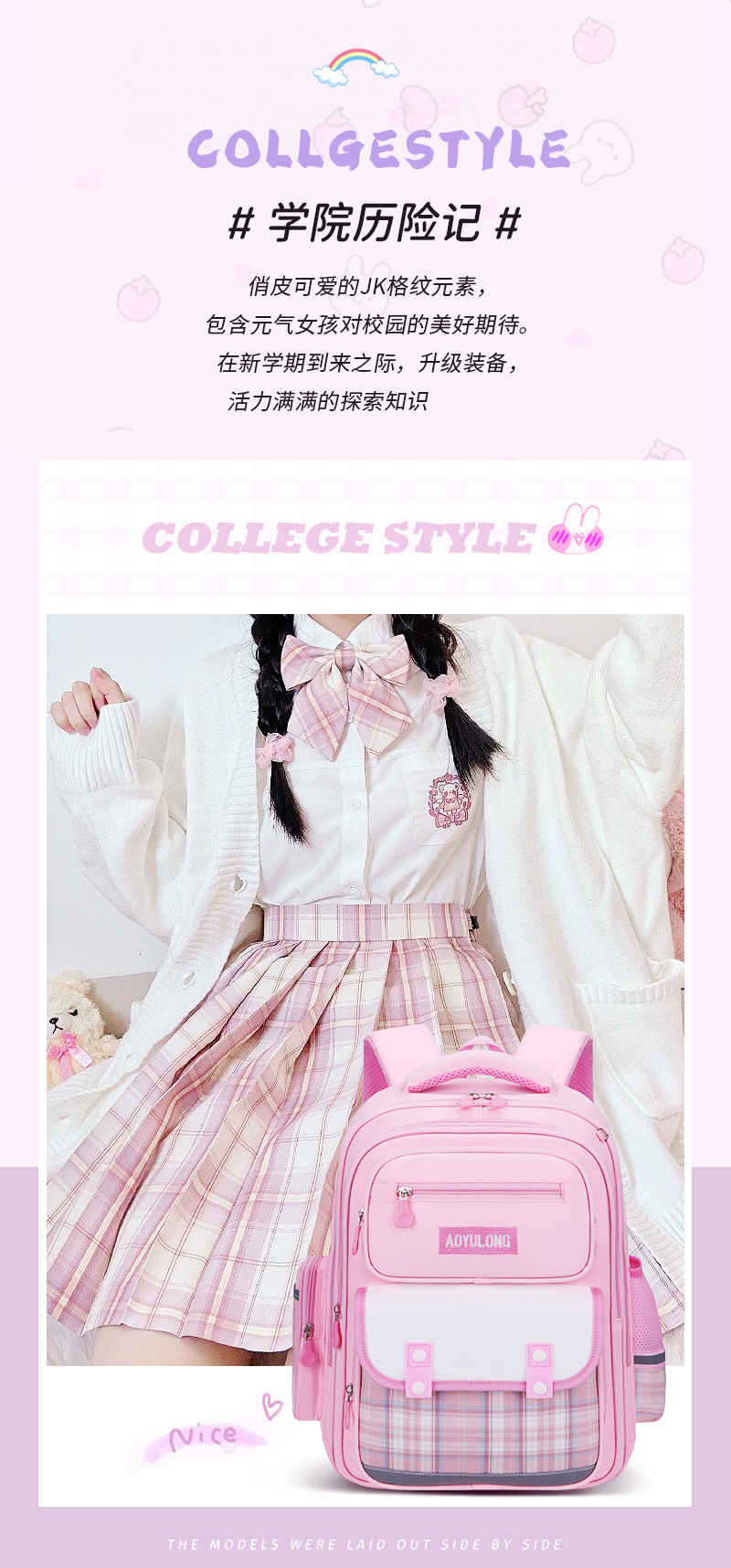 英伦风一体式小学生书包男女格纹大容量防泼水减负护脊儿童双肩包